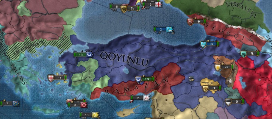 いよいよオスマンとの和平も明けましたので、下準備としてHISN KAYFAに使者を送りオスマンとの同盟を切らせたところで