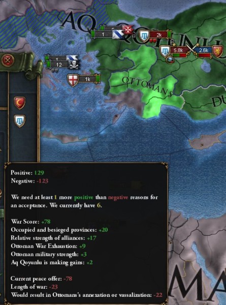 アナトリア半島西部のあっちこっちをオスマンに占領されています。戦勝点は-35%。