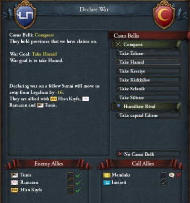オスマンの同盟相手はチュニスとクリミア。我が国と同盟しているマムルーク・オーストリアは参戦の意志がございません。