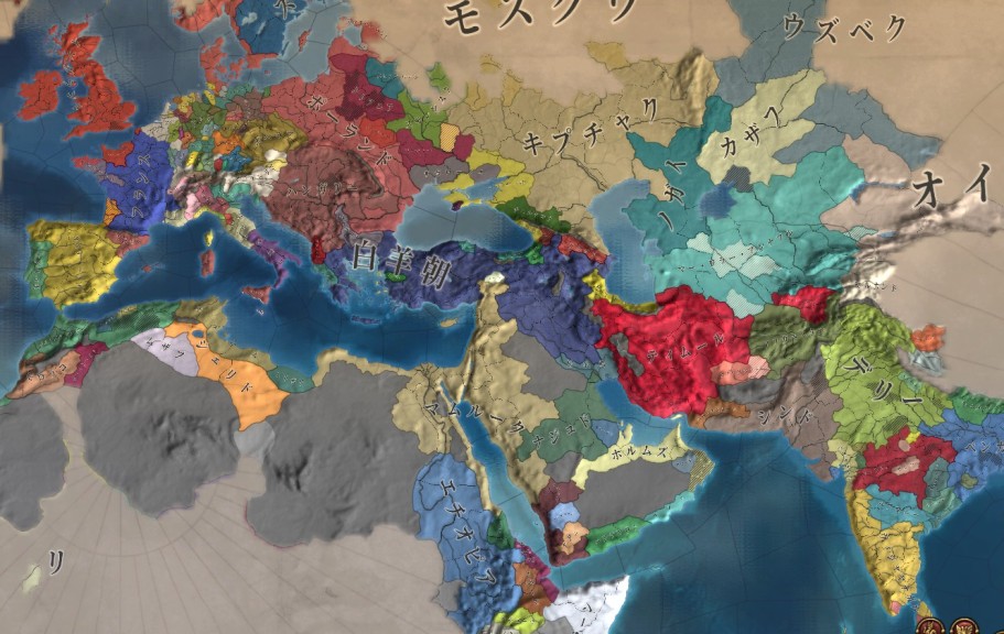 ギーラーン戦は1年を経ずに終息しました。我々は狙い通り2州を獲得。またティムールの好感14を得ました。