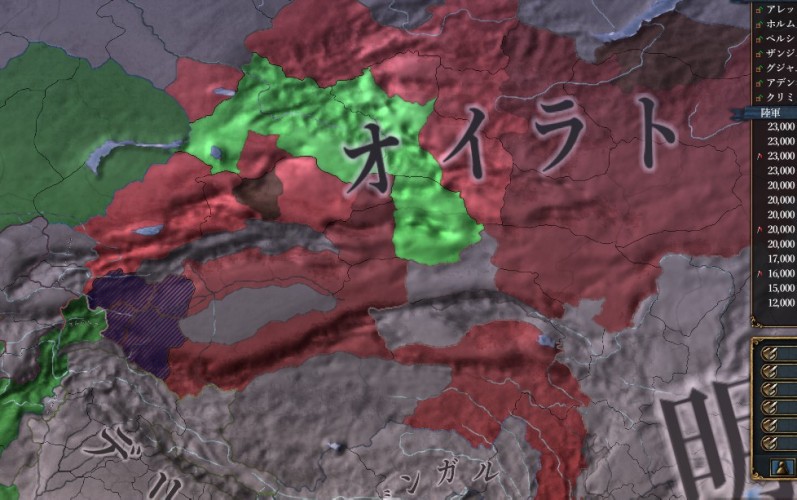 ライオン殿、1644年、シルクロードの先で事変が起こりました。オイラトと明が戦っております。