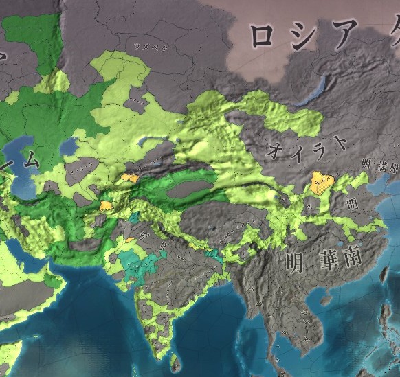 はっ、我が国はちょうどウズベク、ティムールと同時に戦っておりますが、ティムール領の一部にヤルカンドの旧領が。
