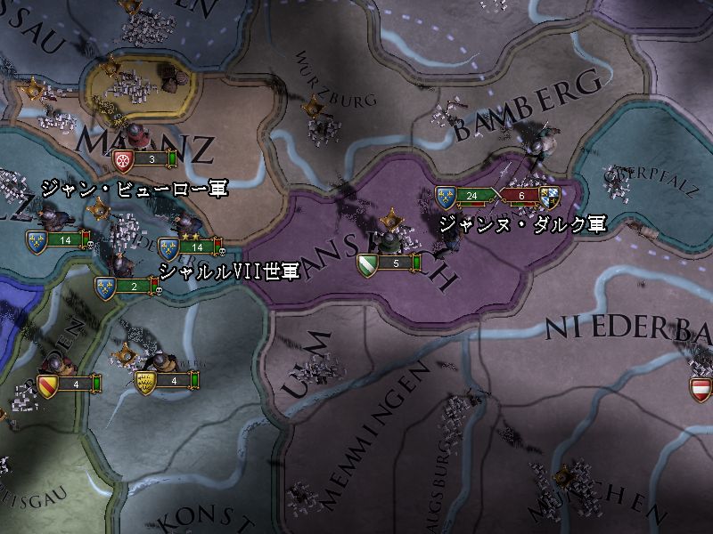 プファルツ攻囲軍の司令官は攻城戦に長けたジャン・ビューローです。