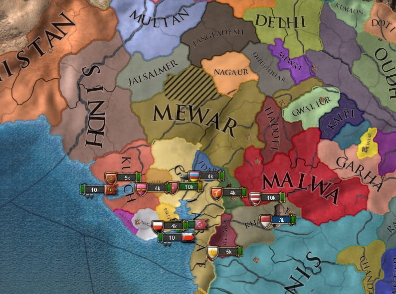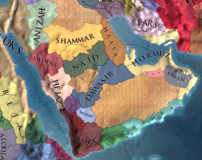 1444年開始時に多くのコアが存在し、再征服CBが有効に機能する国。多くは1594年にコアを消失してしまうため、前半戦で活躍する。