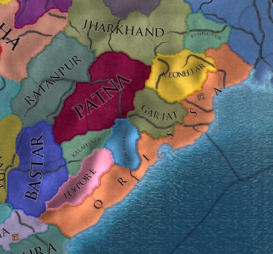 (Orissaで開始し、朝貢国以外の属国込みで熱帯木材を産出する州を全て領有する)