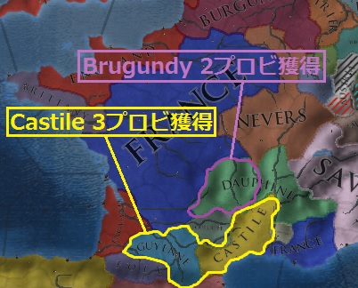Brugundyは北フランスの一部、Castileは南フランスの小国を属国に