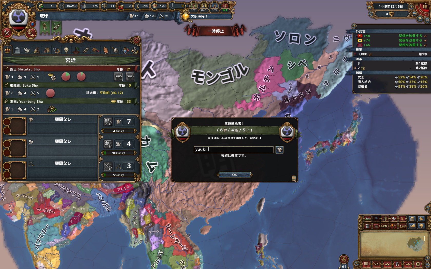 琉球のような弱小勢力は軍事による拡張だけでは足りないので植民による拡張との両輪で強力な国にしていきます