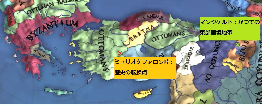 マンジケルト、ミュリオケファロンの敗北はビザンツ帝国にとって歴史の転換点となり、その後は東西から領土を削り取られ続ける存在であることを余儀なくされたのであった。