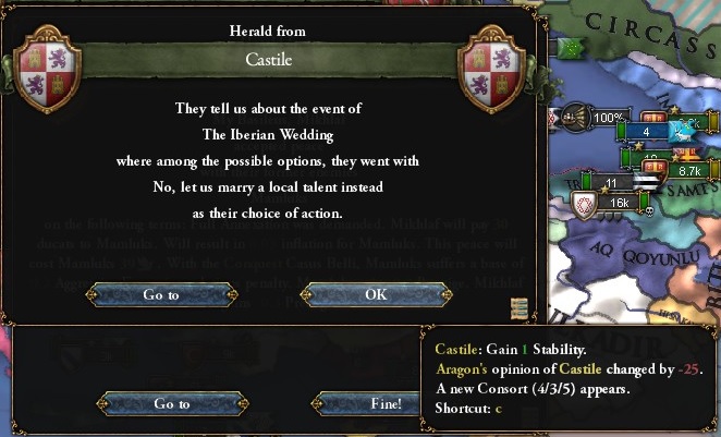 中東拡大に便利なSyriaとIraqの中核だけのつもりでDulkadirを征服した結果、初の包囲網が形成されます。Venice、Genova、Mamluksを中心とする国家が宣戦布告してきたのは数年後の1511年。MoscovyがDenmark戦で参加できない隙をついてのことでした。