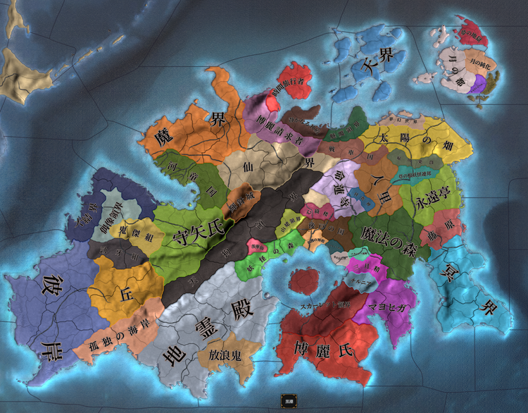 既存の世界地図に東方Projectの幻想郷を出現させたMOD。場所は日本の右隣の太平洋に巨大な大陸として用意され、プロビンス数もかなりある。用意される国家と君主は鬼形獣まで対応されている。ゲーム内イベントは紅魔郷、妖々夢、永夜抄、花映塚、風神録、地霊殿が対応されている。