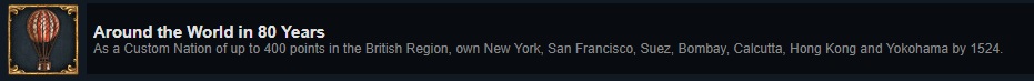 1821年以前に目標を達成する必要があるものの一つ、Around the World in 80 Years。英wikiでVery hardに分類される実績の解除を目指します。