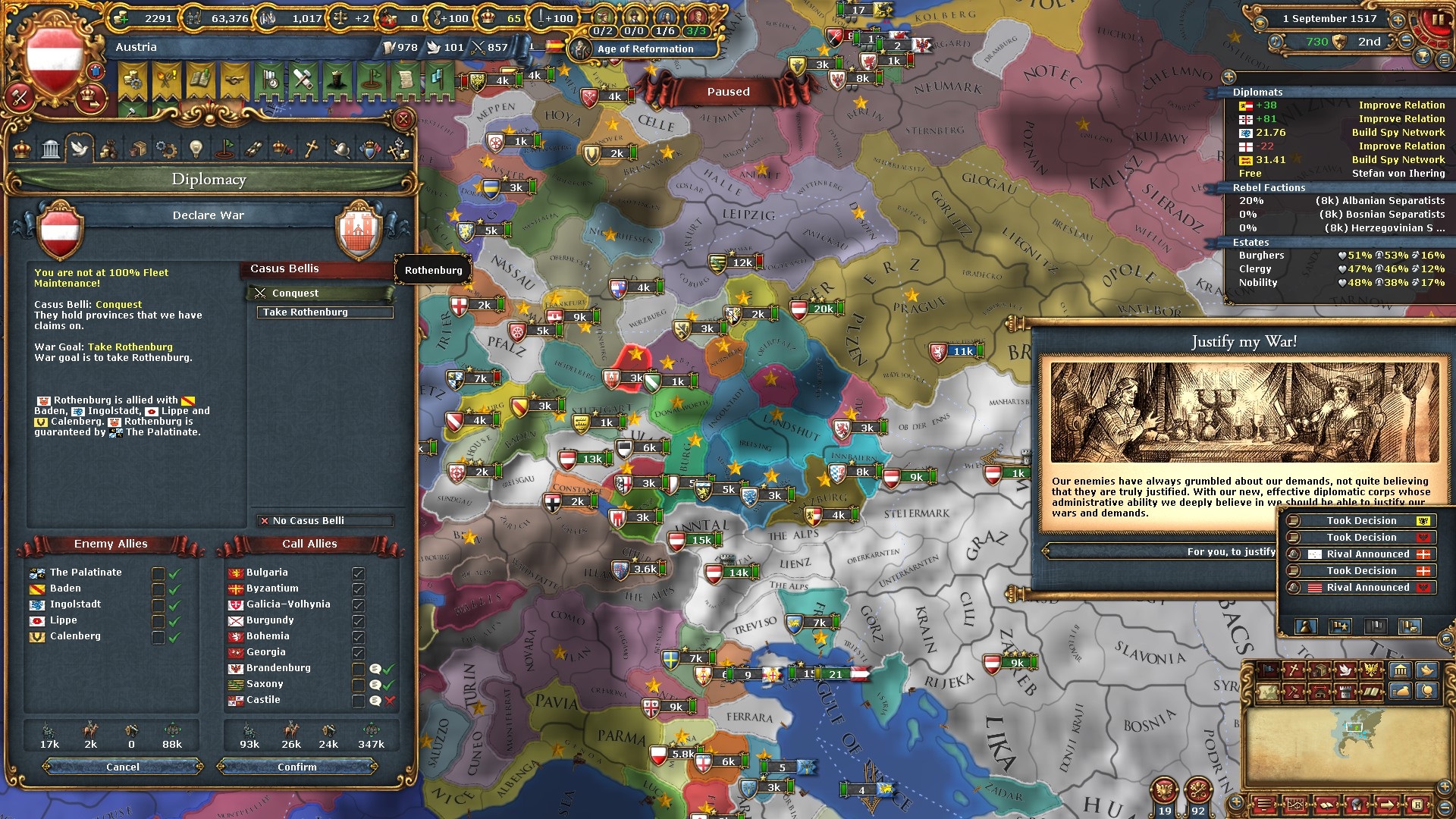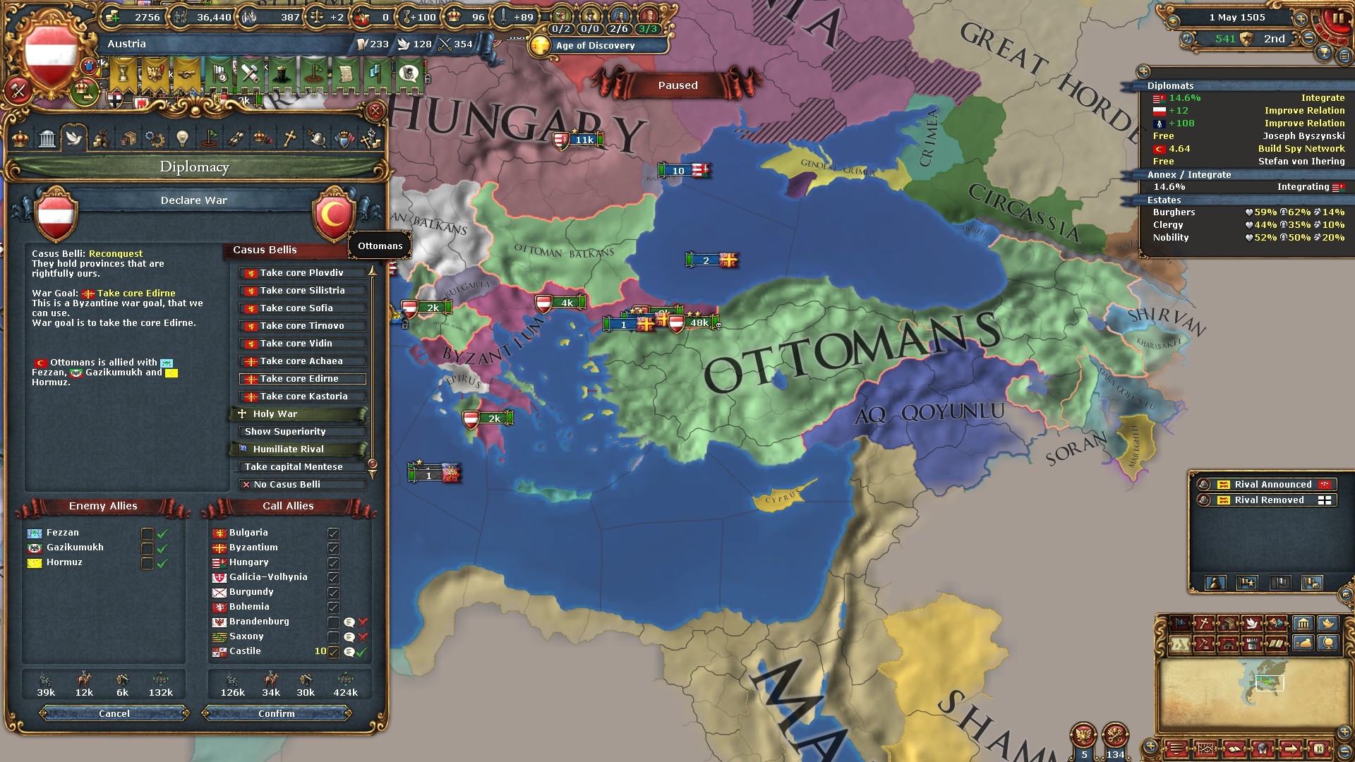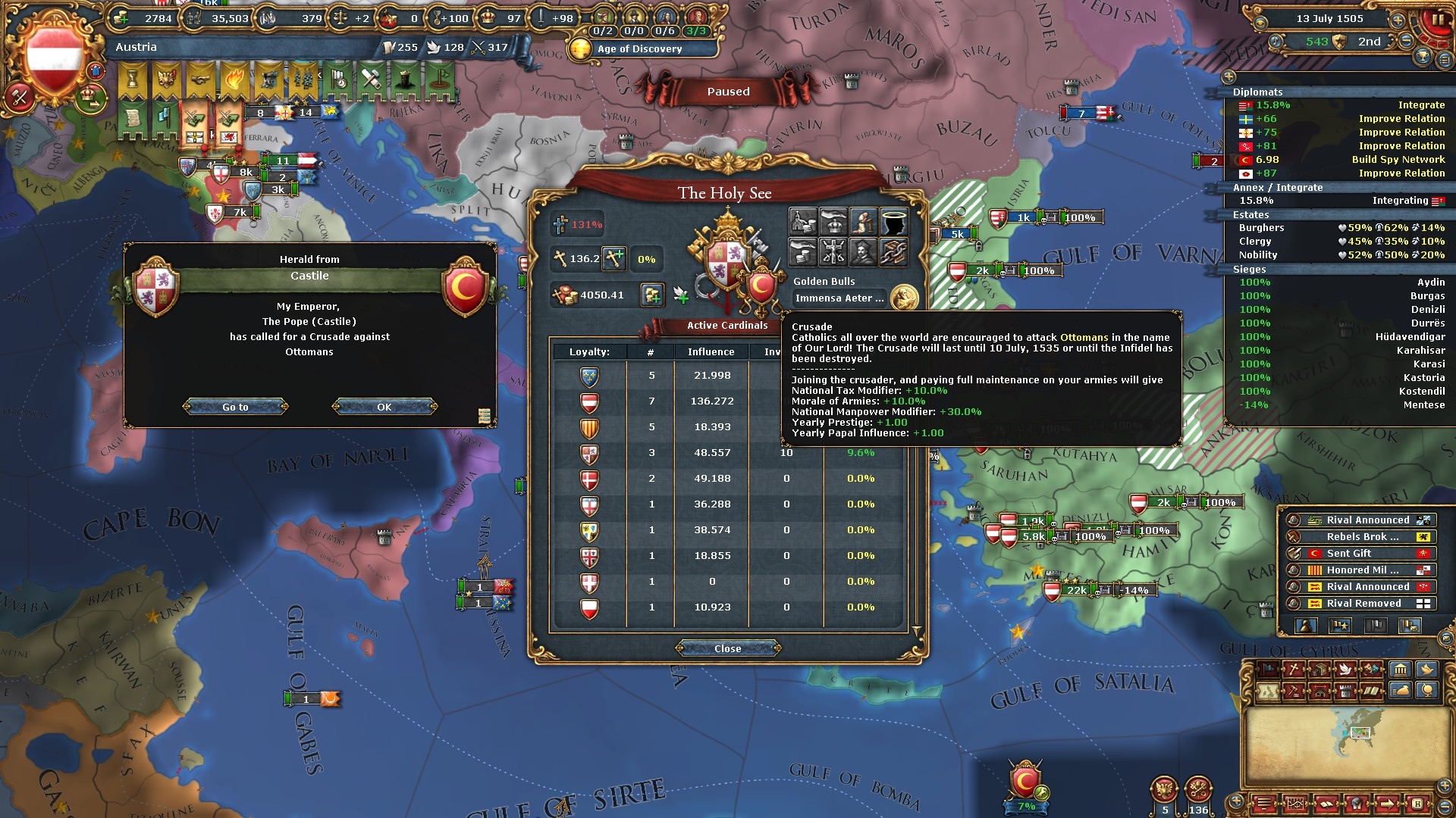 共にオスマンを攻めている同盟国のカステラが十字軍を宣言してくれました。