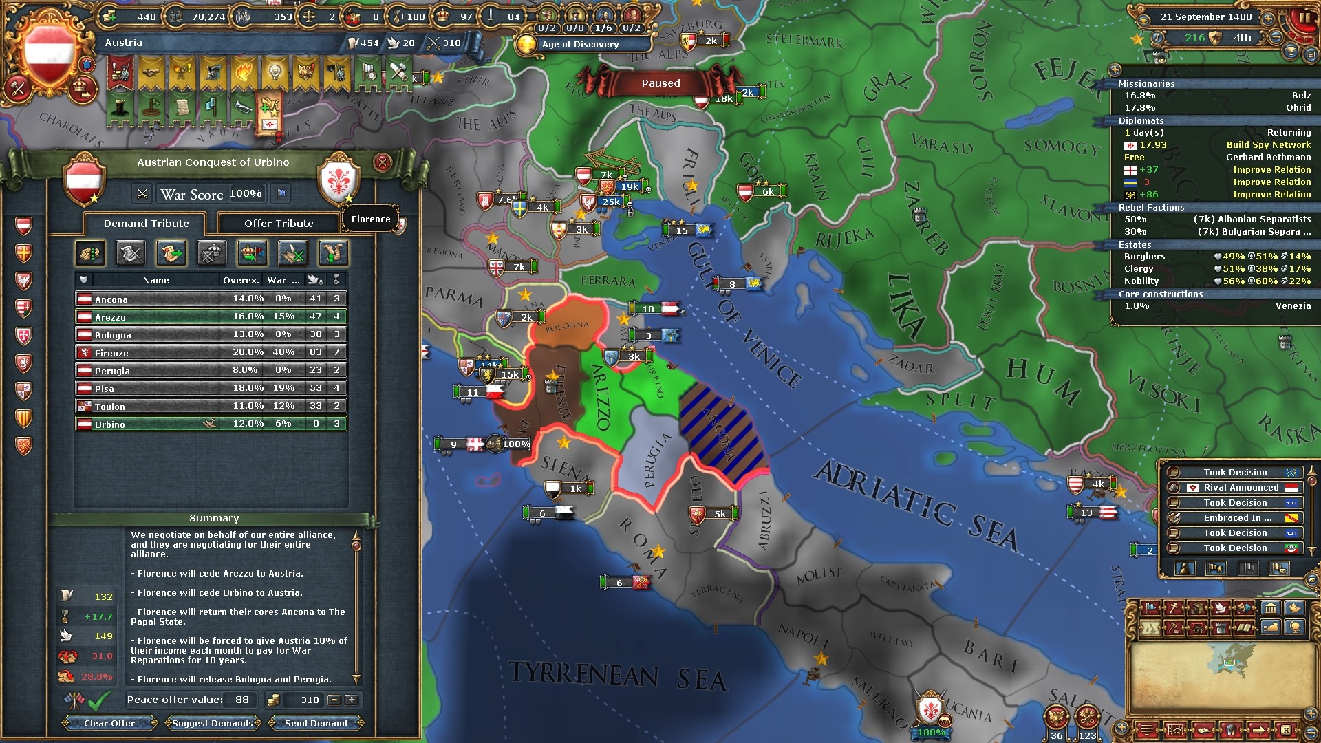オスマン戦のどさくさに紛れて独立保障されているラグーザに帝国の拡大CBにて攻め込みます。