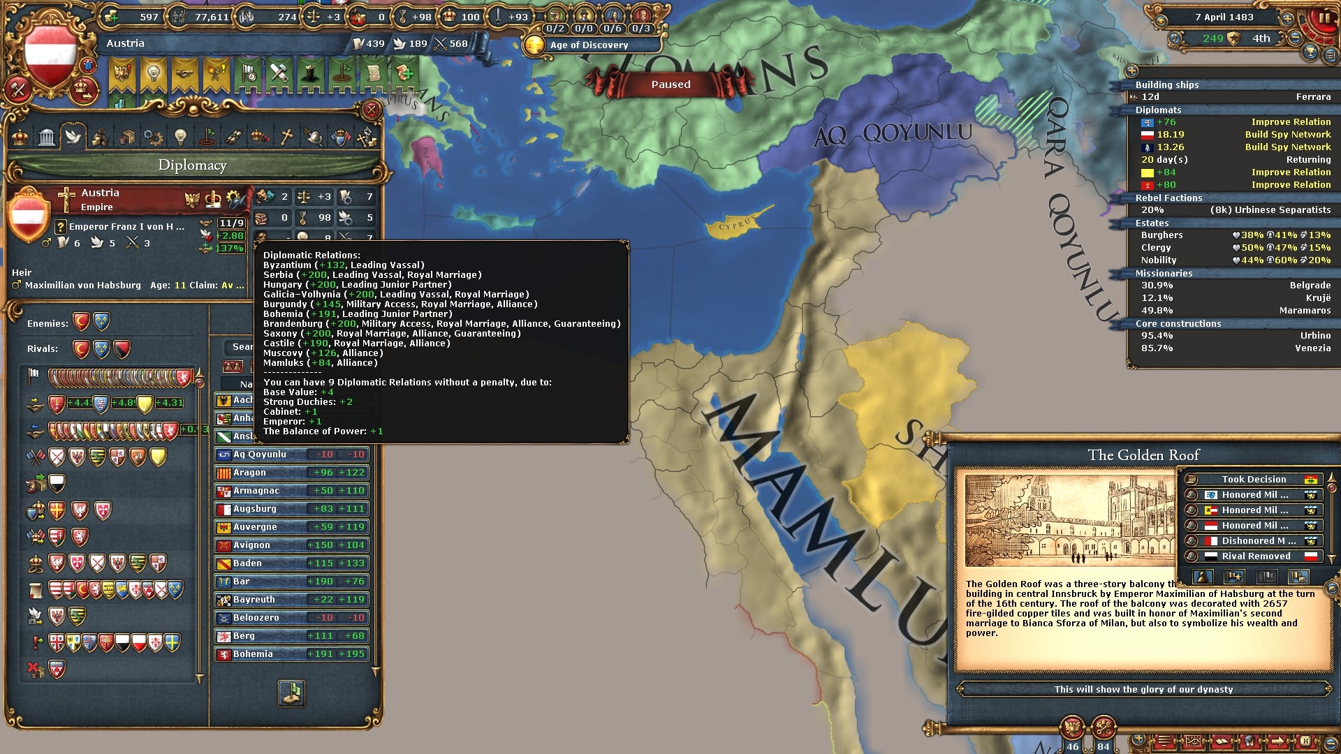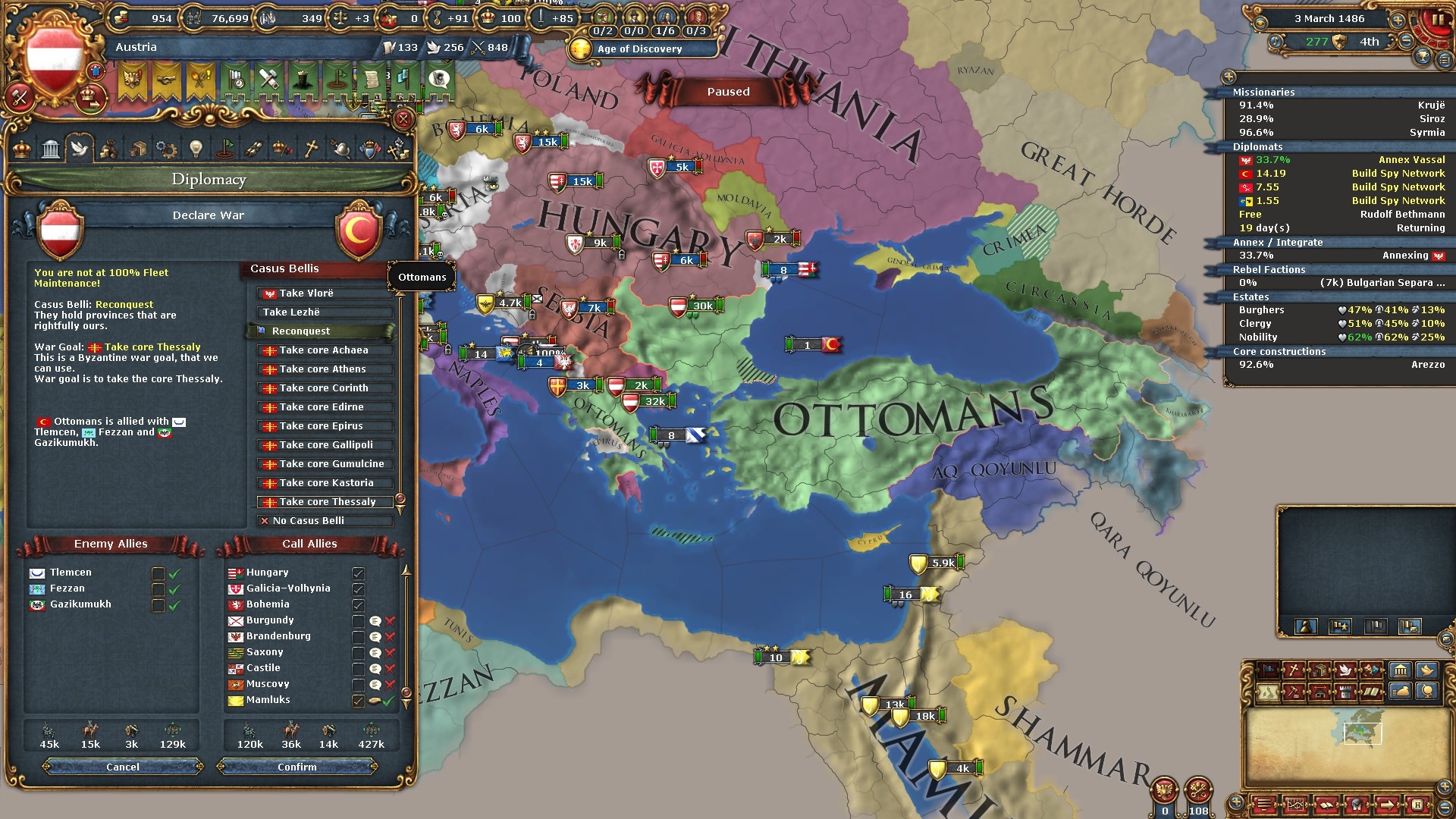 これにより帝国の拡大(Expand Empire)の宣戦事由が使用可能となりました。