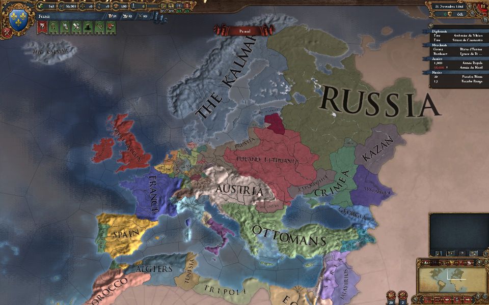 本MOD開始時のフランス周辺の情勢です。