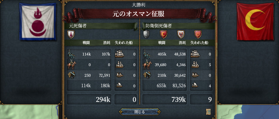 第一次オスマン戦。戦闘に限った死者は114k対655k、キルレ5.7です