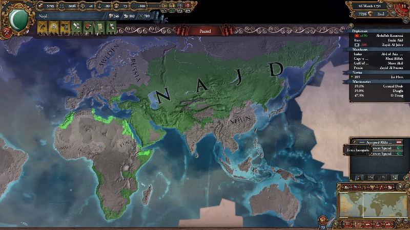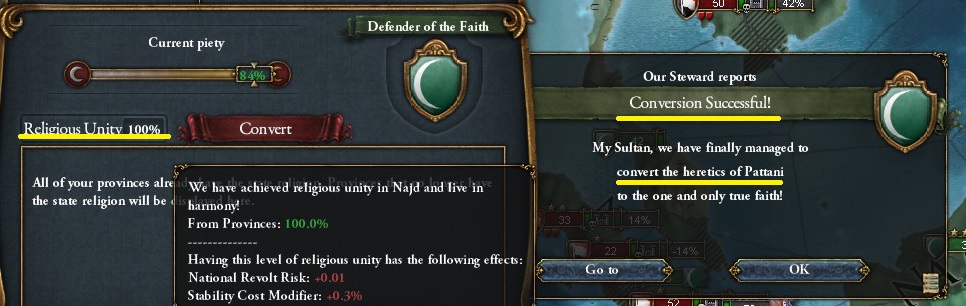 Jihadの実績は50州以上を領有し、宗教統一度が10%であれば達成できる。