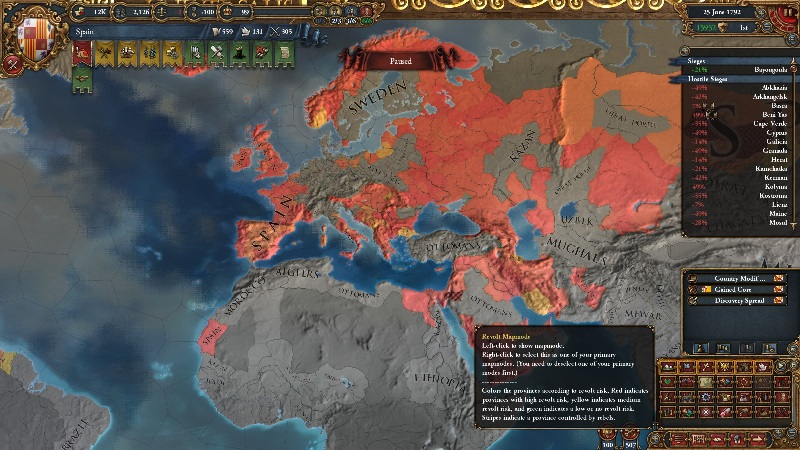 ワシは失敗したプレイと同じことをやり直す気力がなく、お主の助言を得て、スペインで世界征服に挑戦することとした。