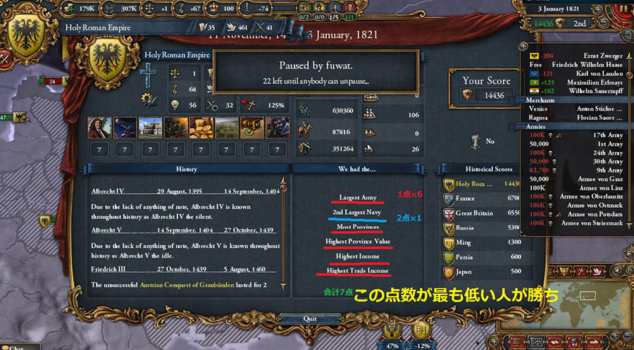 勝利条件という新たな要素を加えたEU4マルチの一部を、筆者のへっぽこプレイとともにお届けしたいと思います。