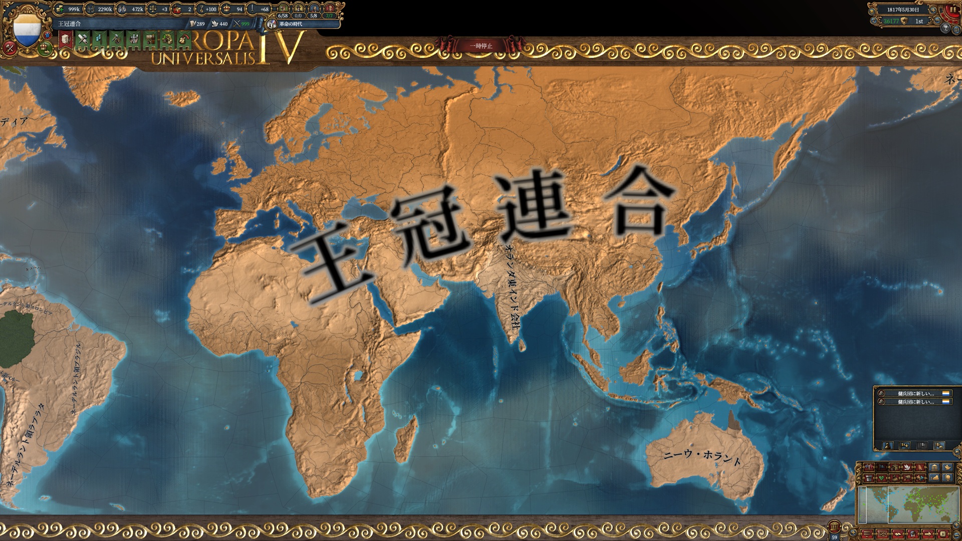 - 東インド会社君の1番厄介なところ、その同盟国に宣戦布告すると何の通知もなく独立&参戦してくるとこなんだよね…せめて「宗主国とは戦いたくない-50」程度の補正はつけてほしかった