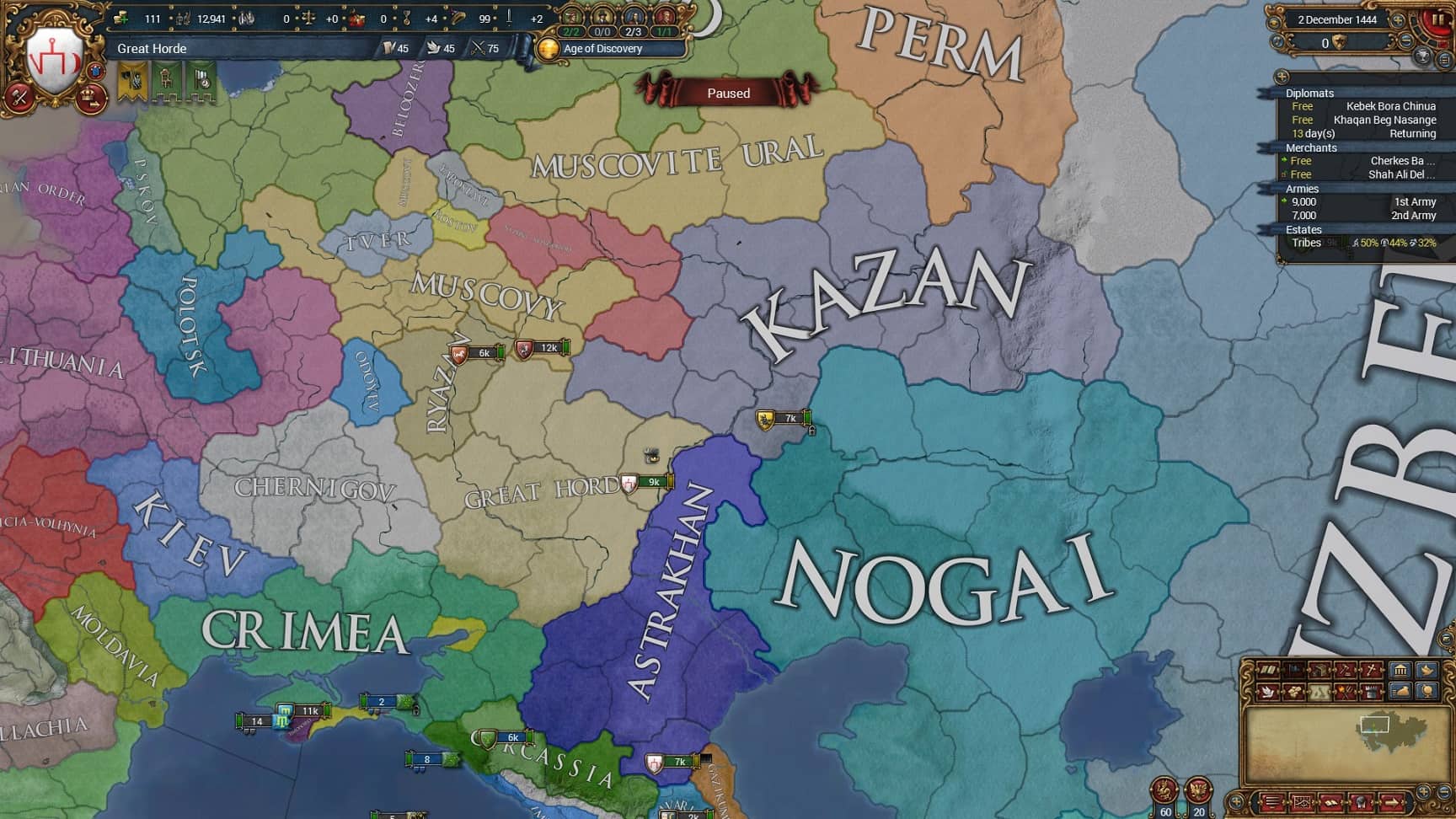 | ポントス・ステップ | A | 大オルド(ジョチ・ウルス) | Great Horde | Bahmut※内陸 | 64/58/9 | 〇(Mishar) | 〇 | ![]() | ||