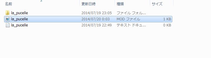 MODをアクティブするには本体データフォルダと「.mod」拡張子の実行ファイルが必要になります。