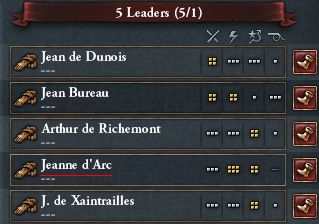 EU4は1444年11月11日から始まりますので、「Jeanne d'Arc」という将軍は1444年には死亡=存在しないというです。