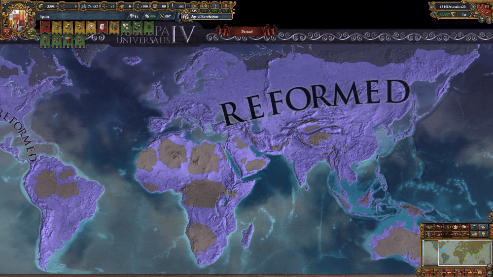 今回は改革派でOFを狙いました。カトリック&プロテスタントだと難易度が低めで面白味が少ないので改革派でやってみました。