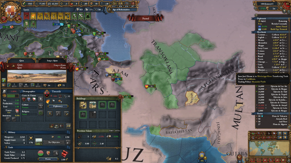 ここも、イラク、シリア、ティムール等の再征服コアを多量に持つ国家が控えてますので早々に抑えます。特に、ティムールくんは今回のAARで獅子奮迅の活躍をしてくれました。