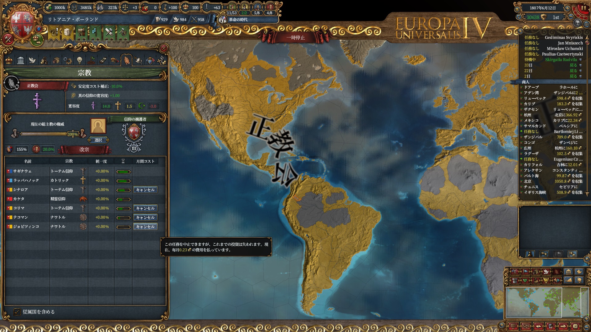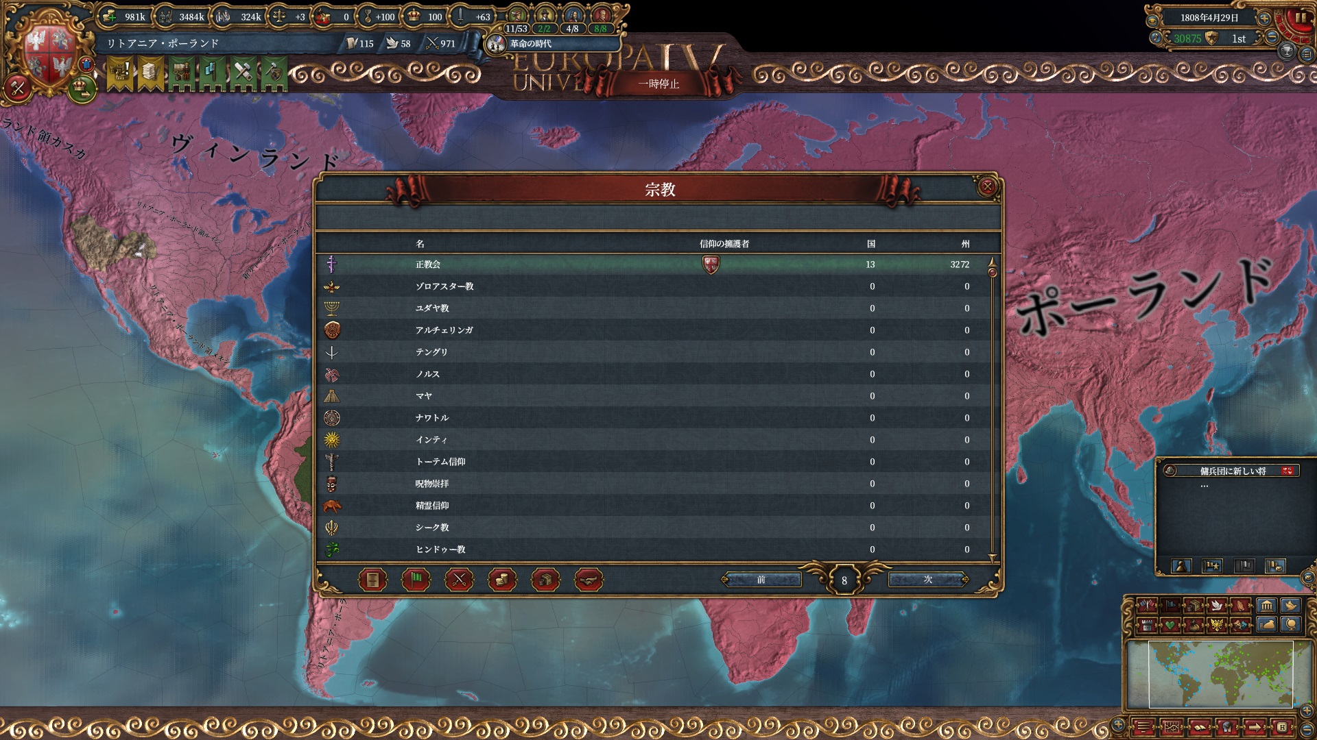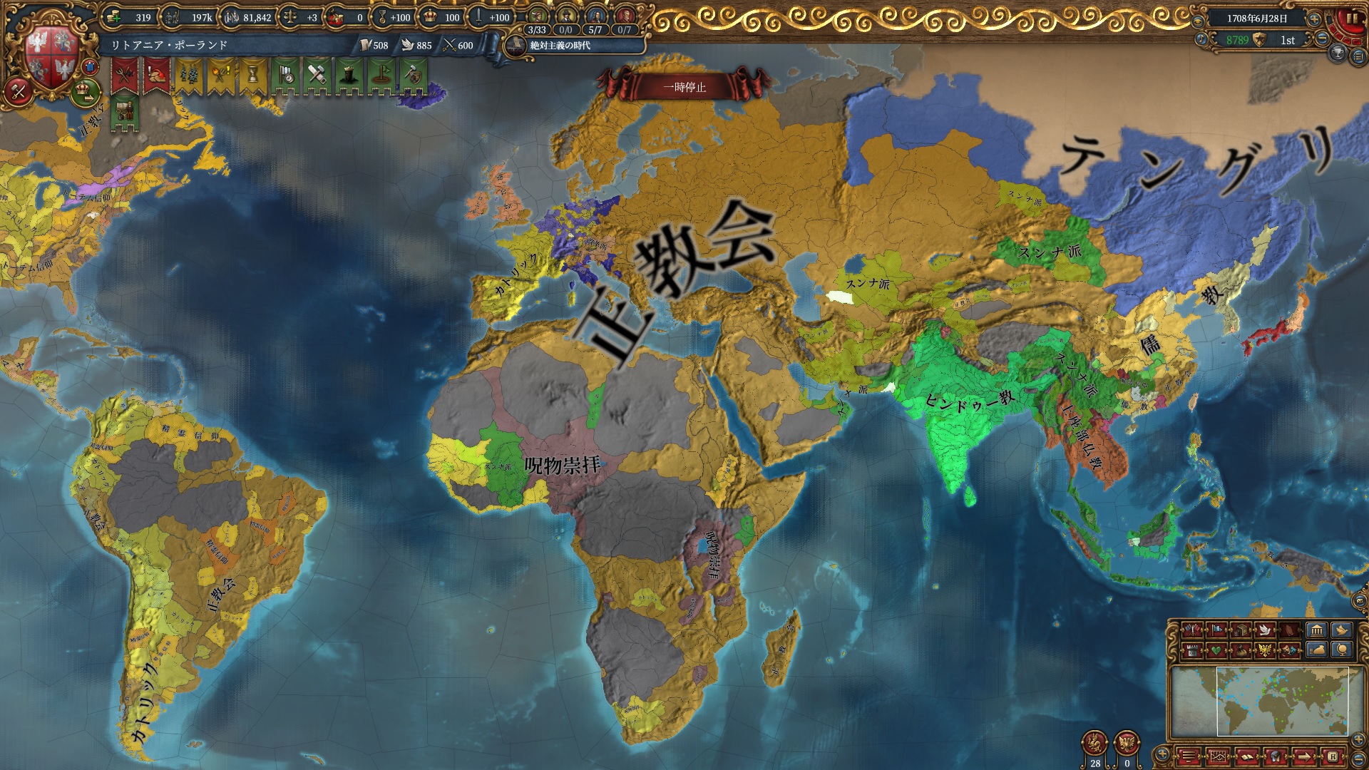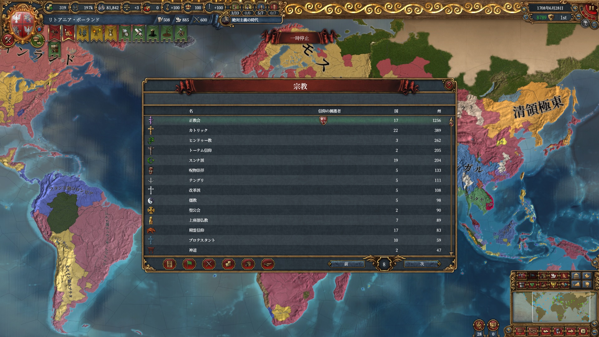 あとは緩やかに改宗プレイをば。植民地国家が大分残ってるのでそこそこ時間がかかりそうです。