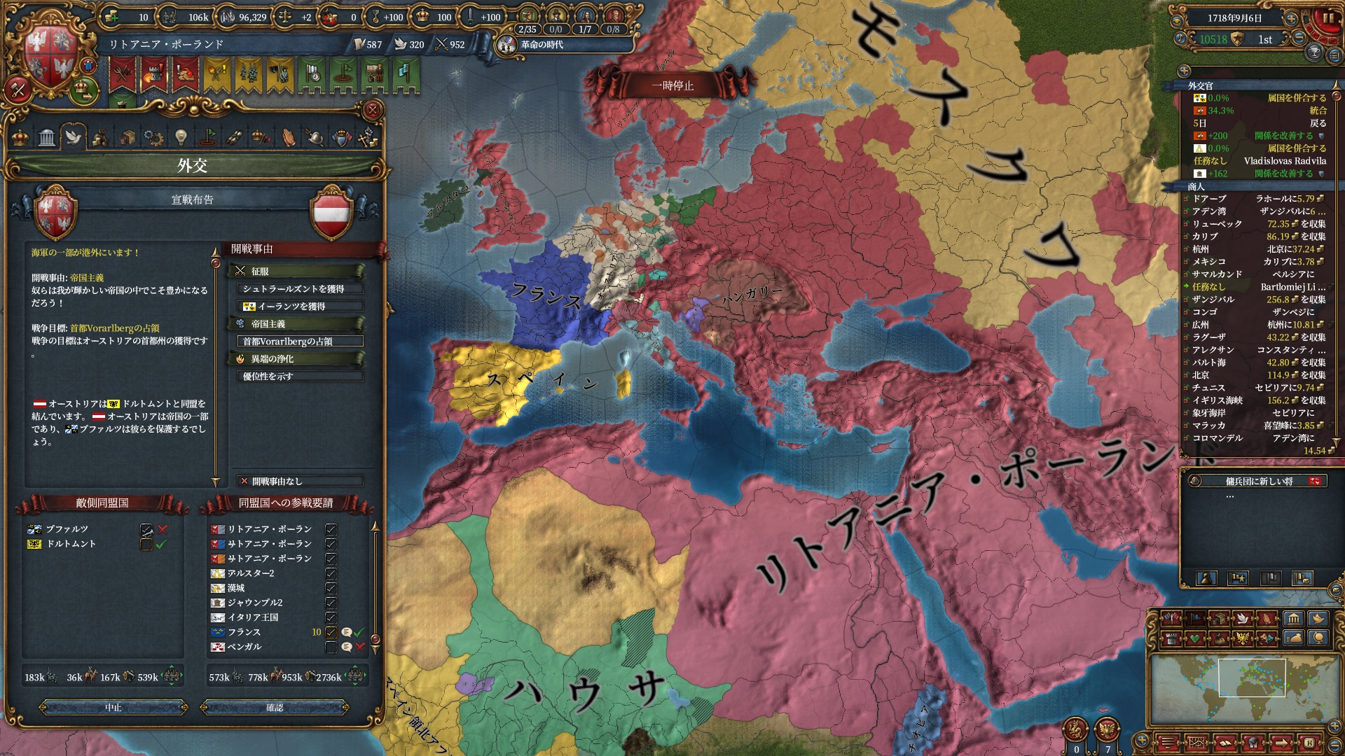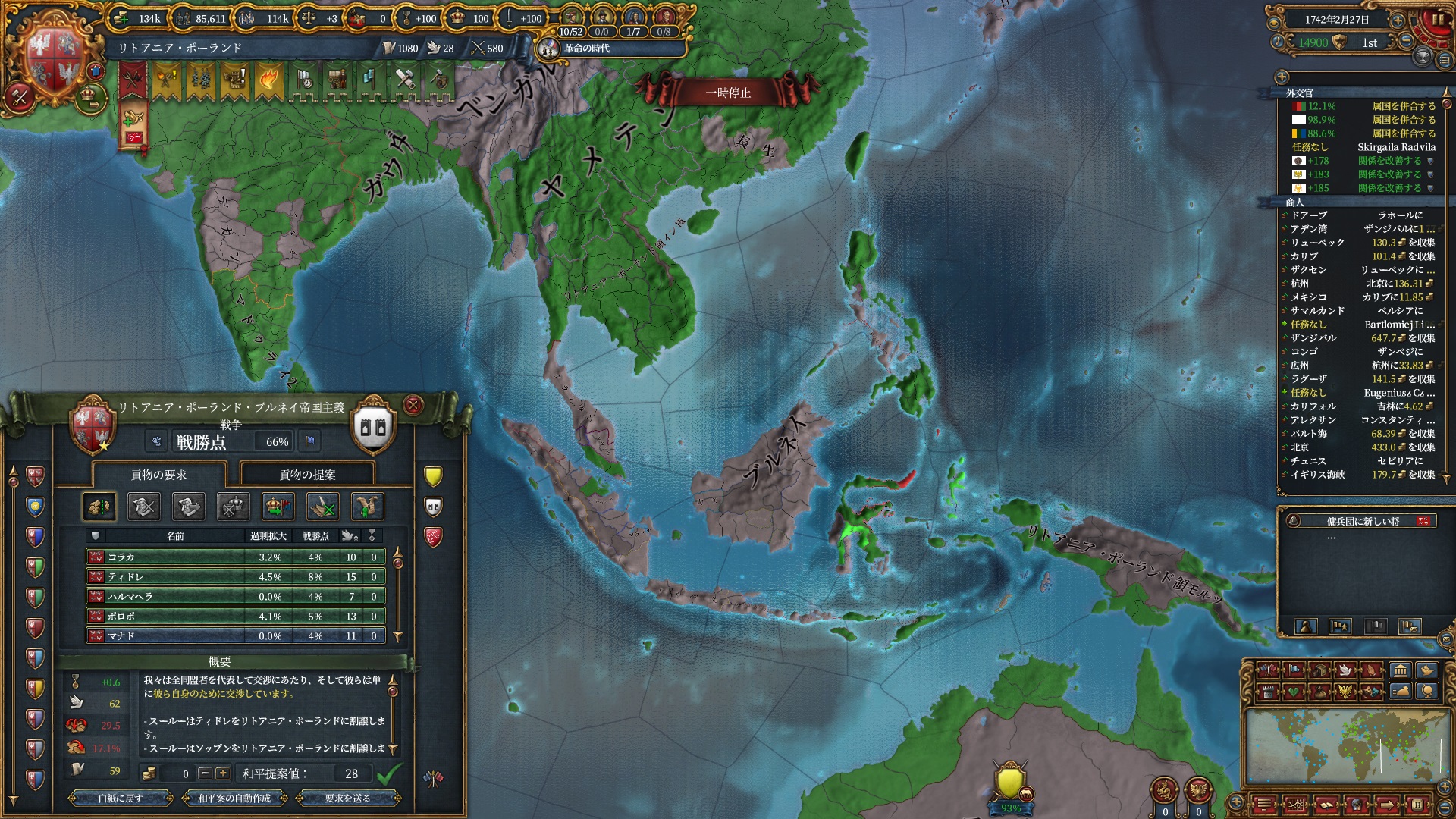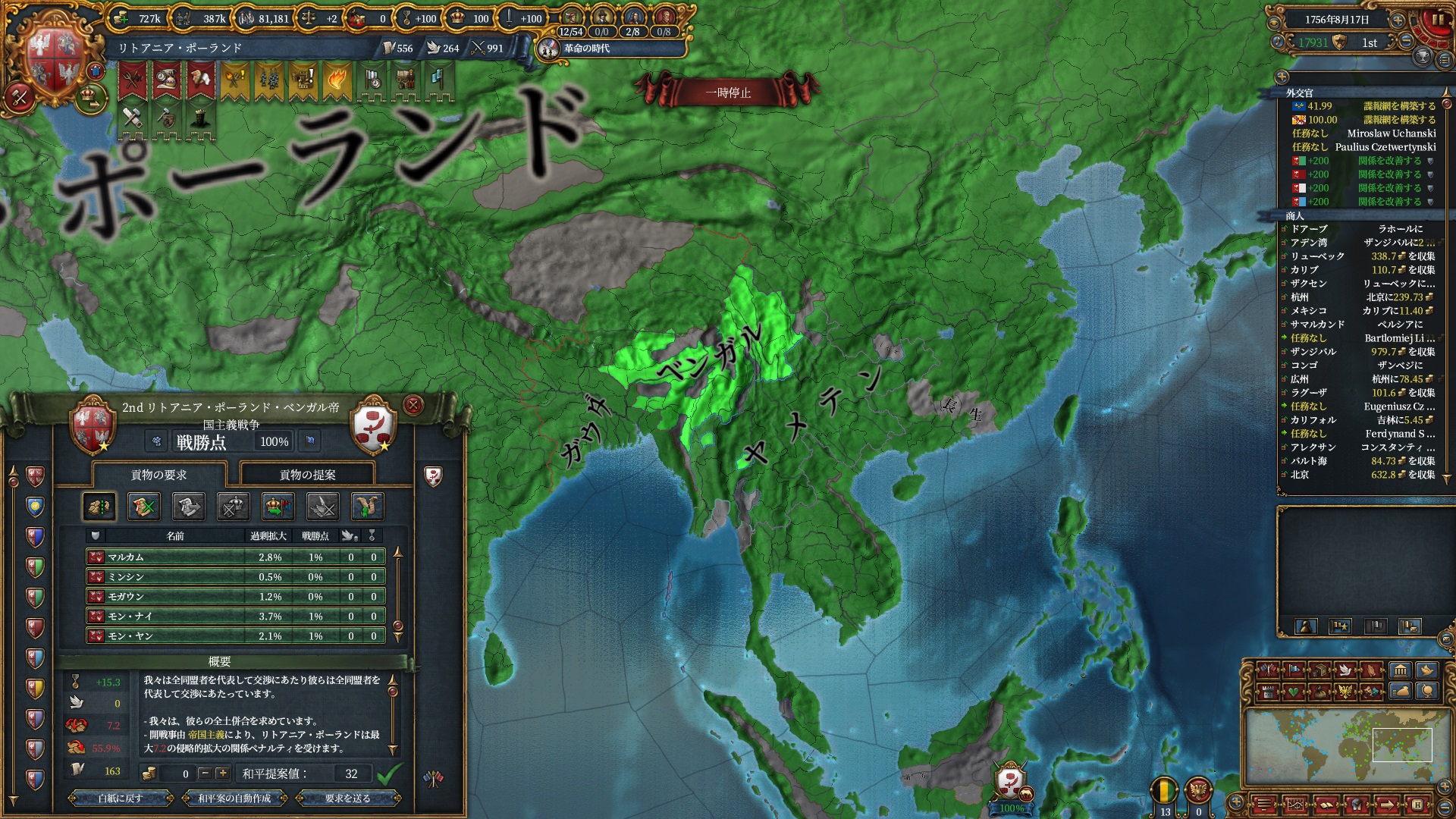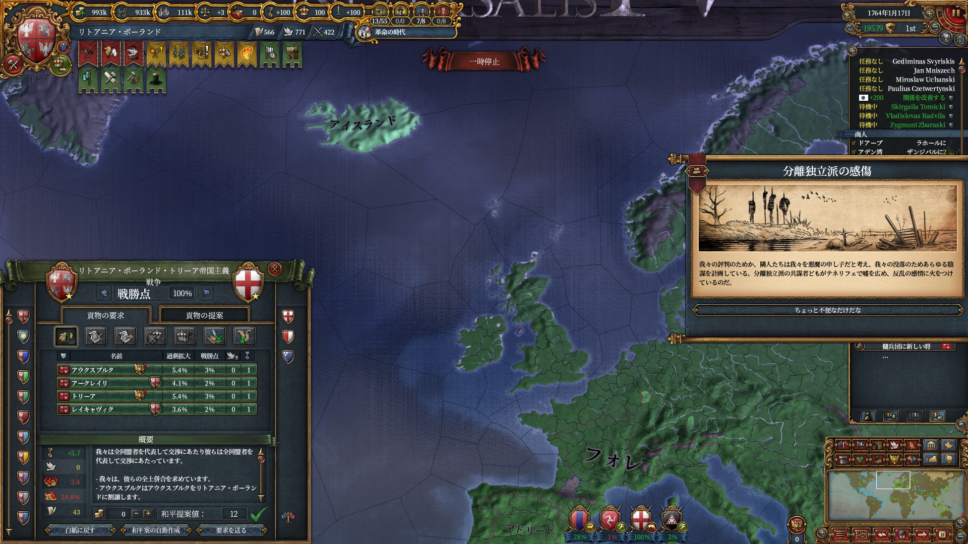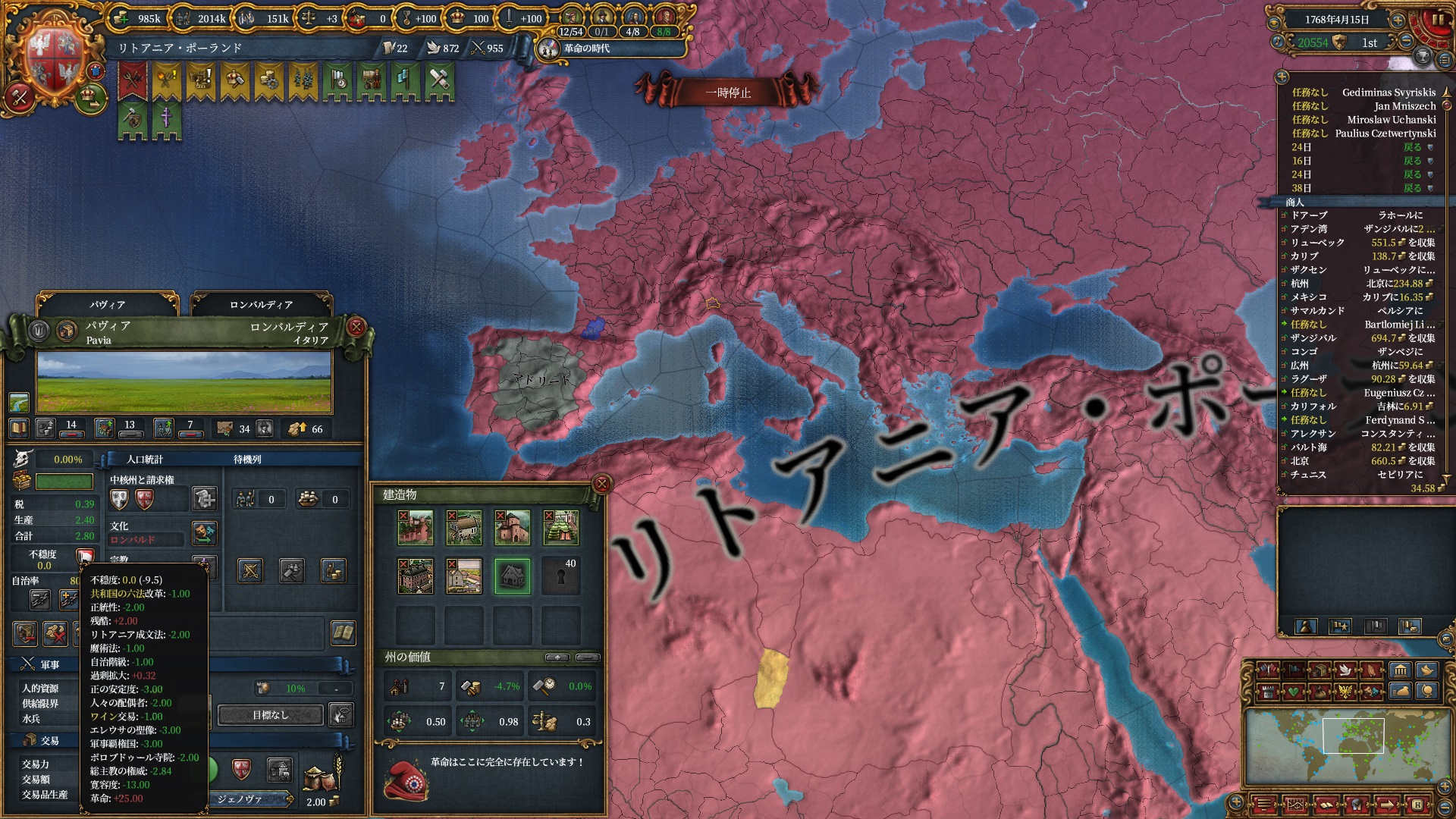 ゲーム後半はリトアニア=ポーランドNI・権勢アイデア・権勢統治ポリシーが合わさり属国併合コストは-60%に達します(特権込みで65%)。