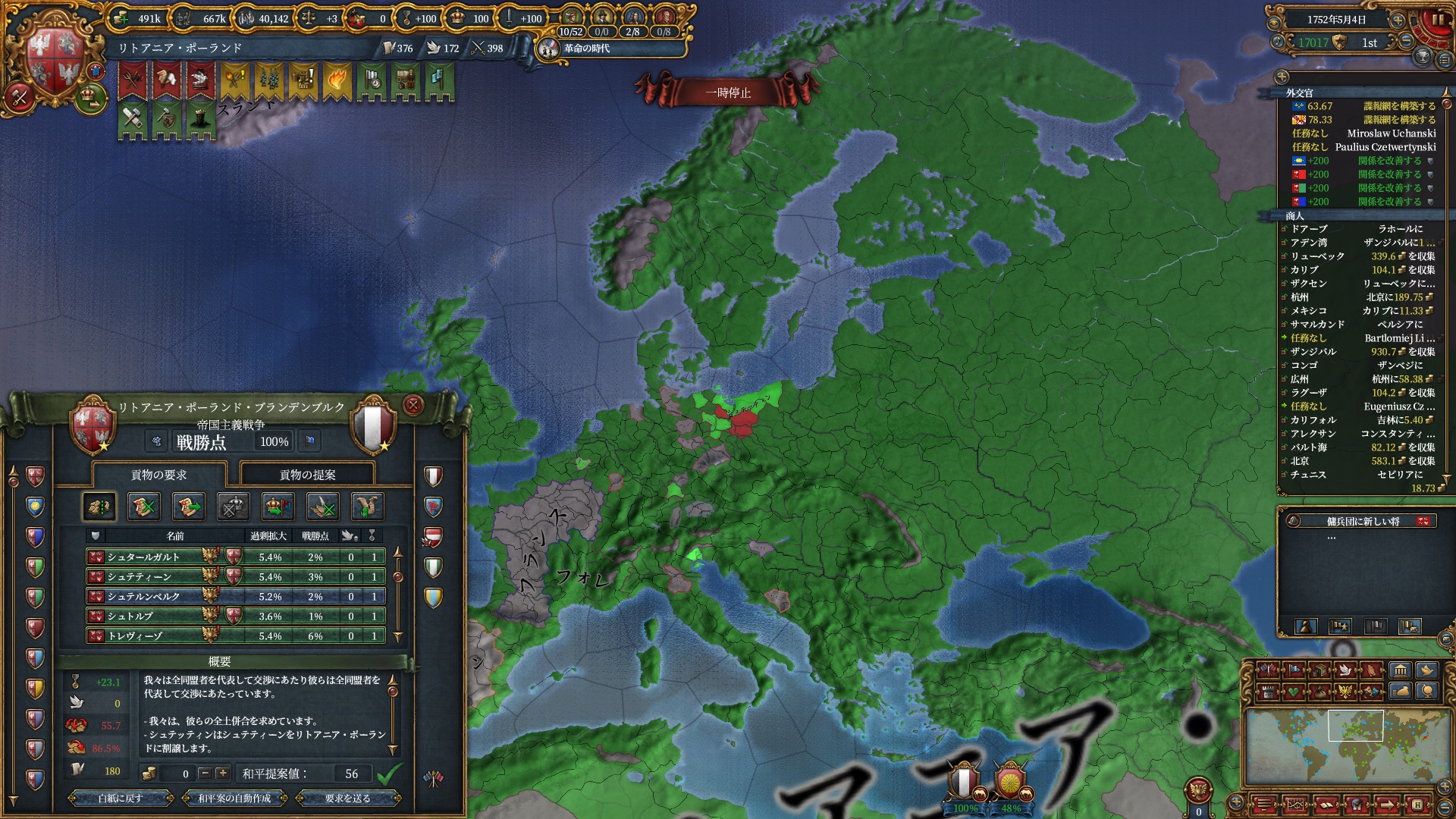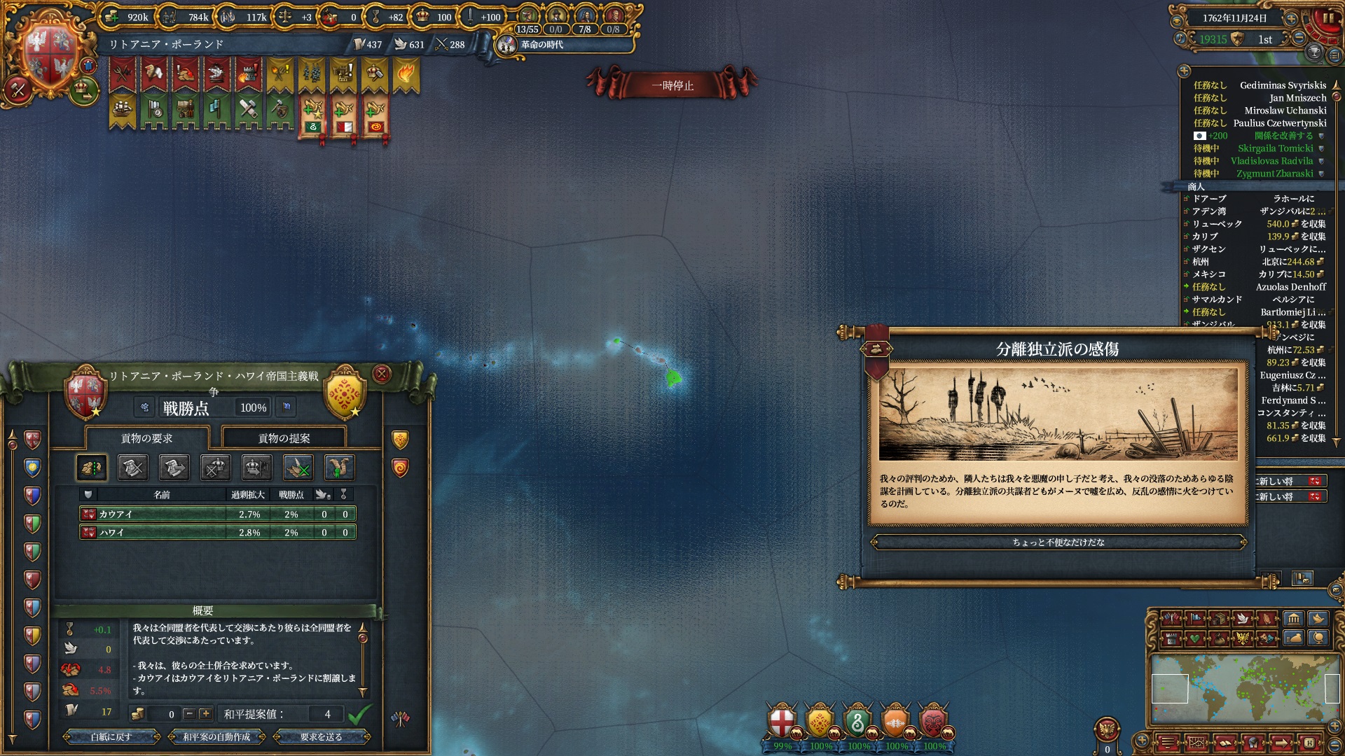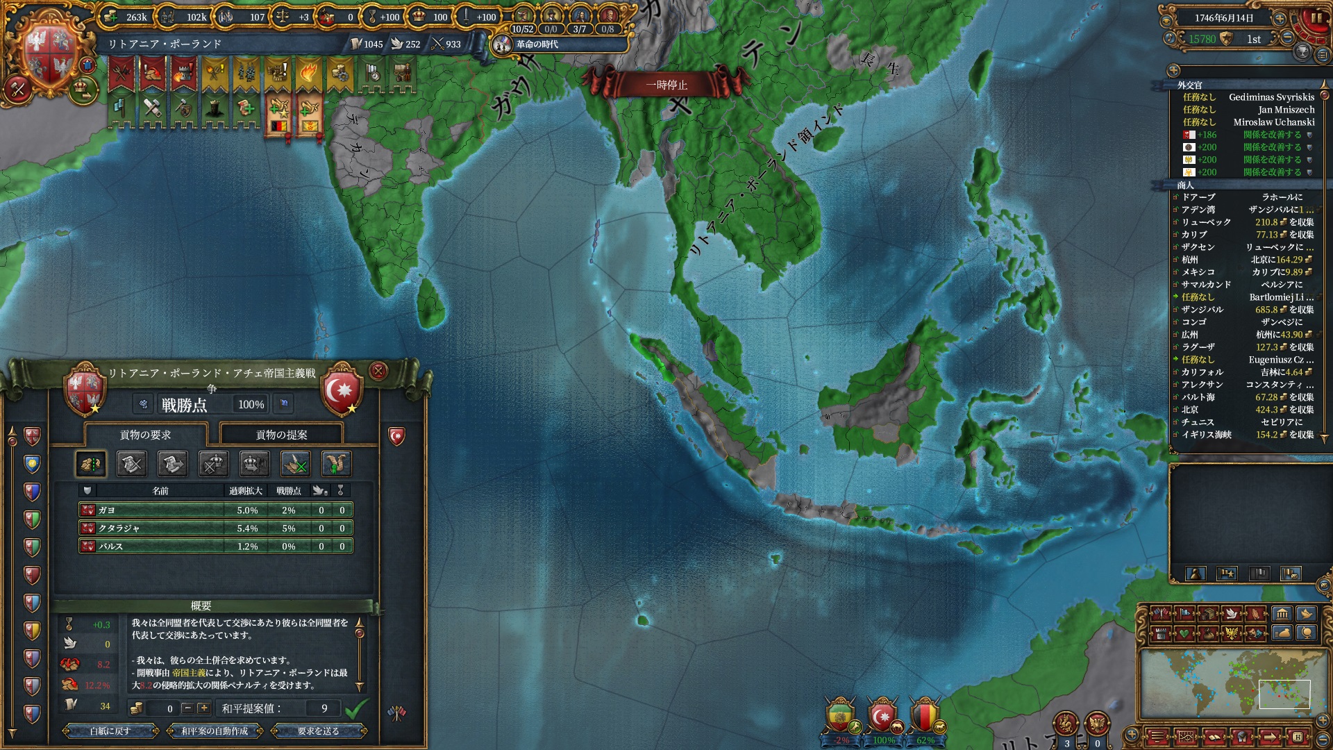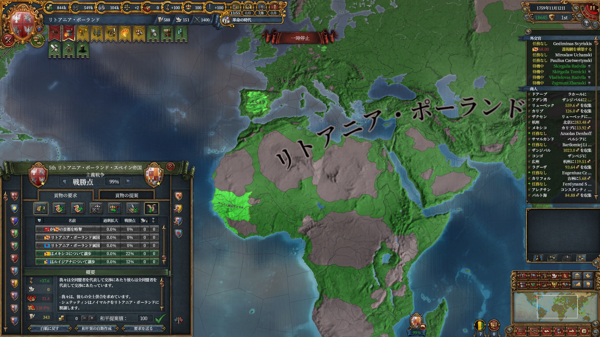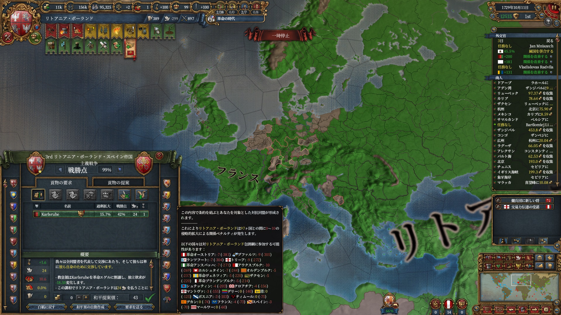 ゲーム後半はリトアニア=ポーランドNI・権勢アイデア・権勢統治ポリシーが合わさり属国併合コストは-60%に達します(特権込みで65%)。