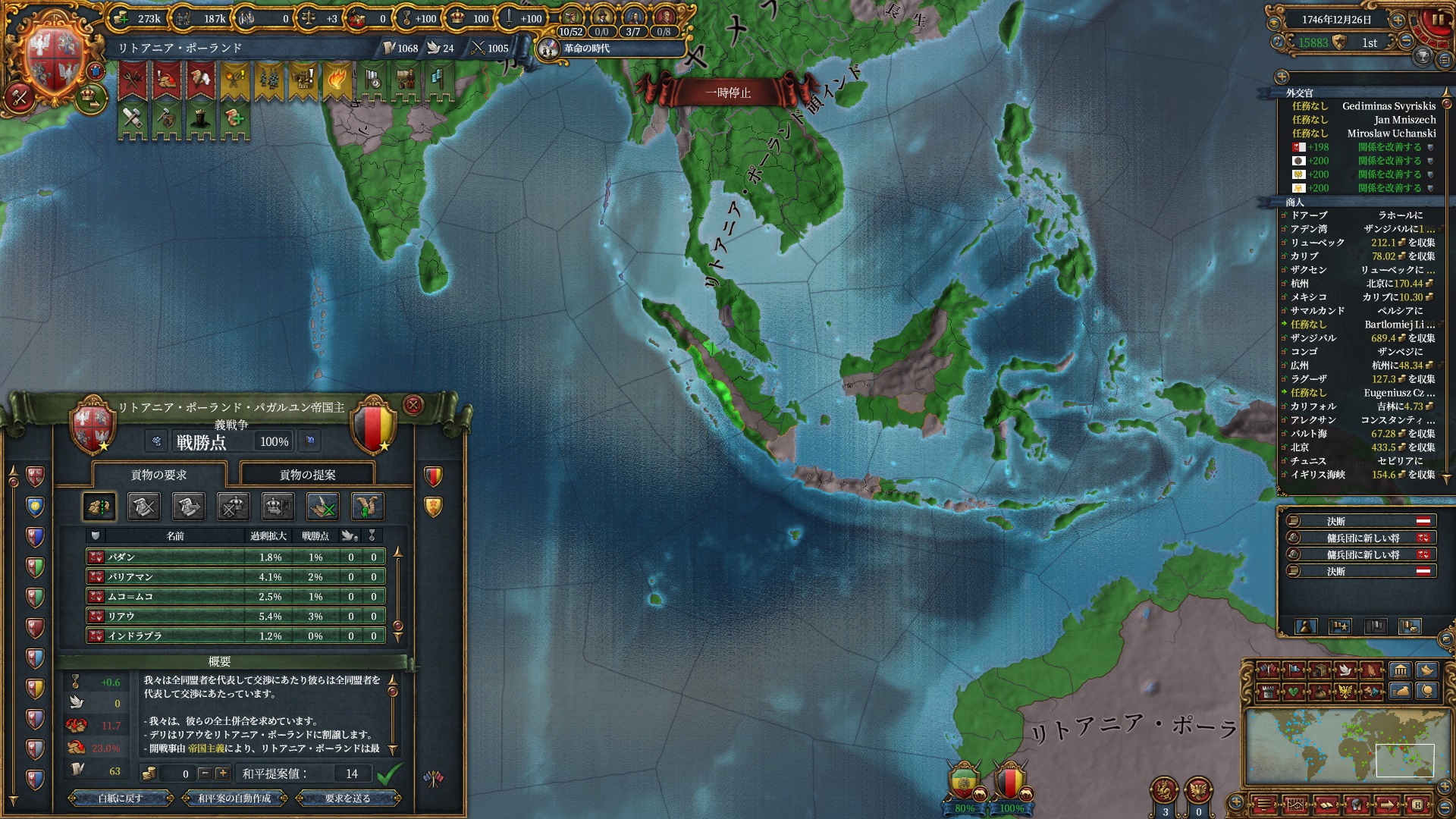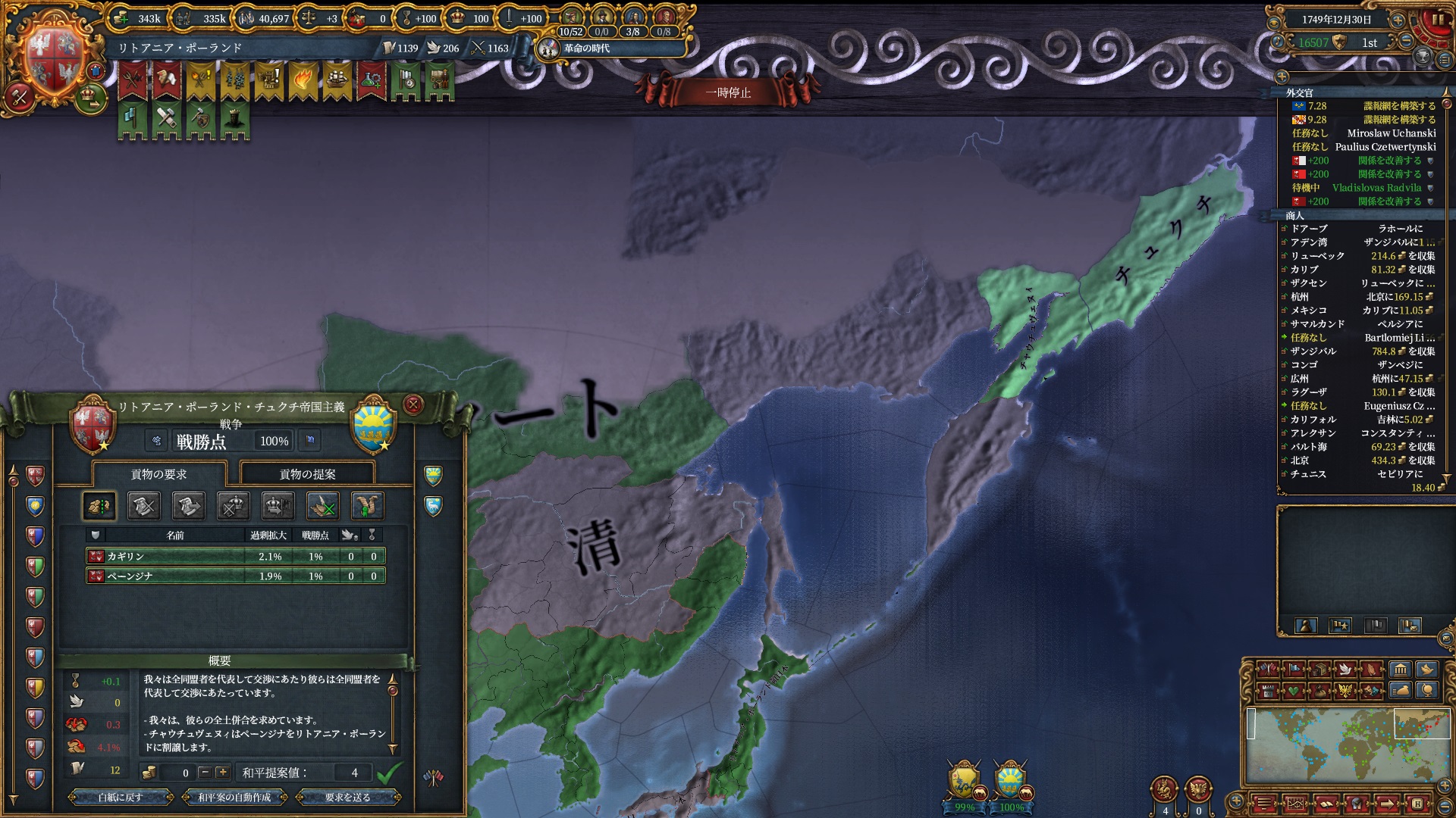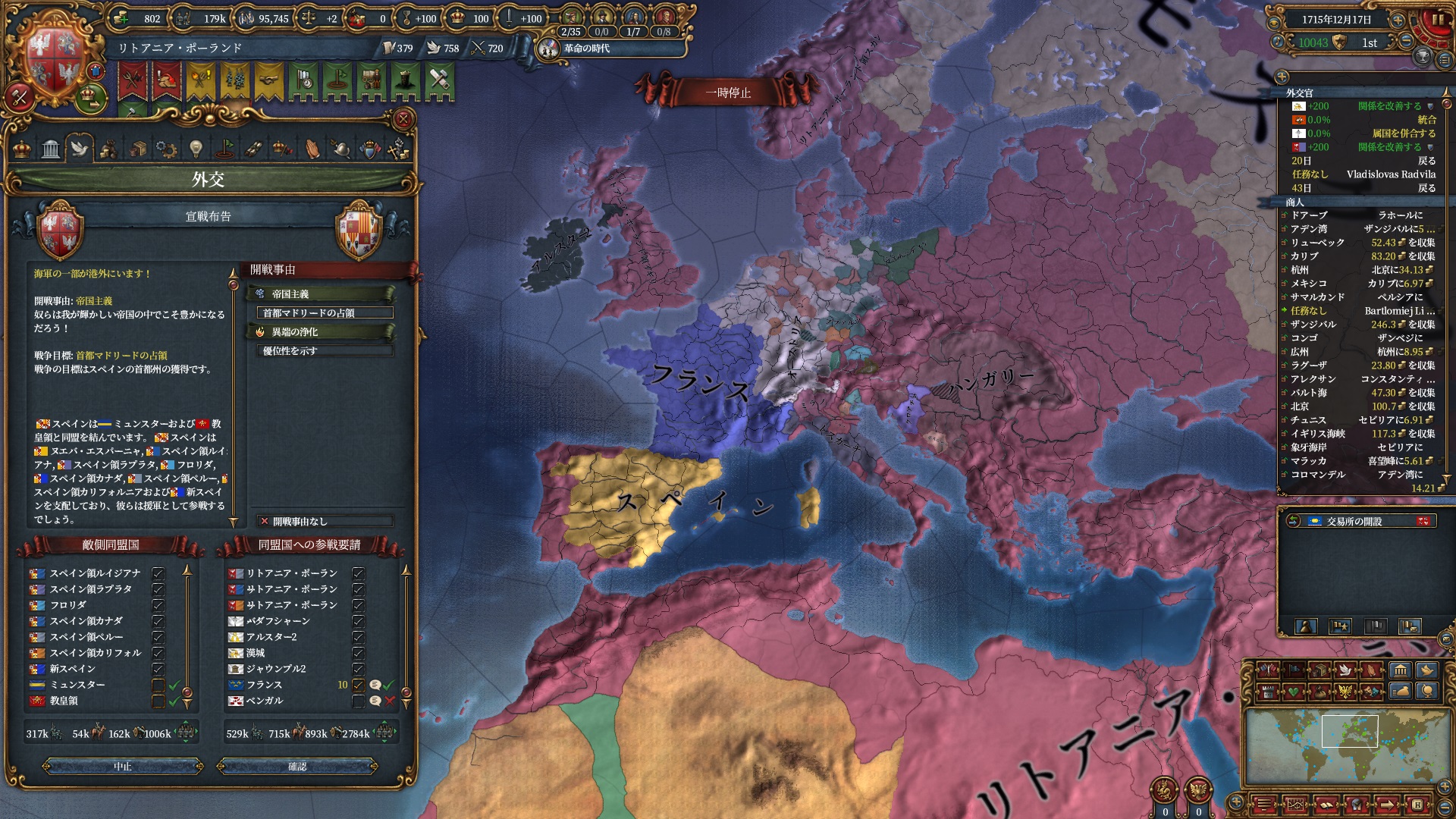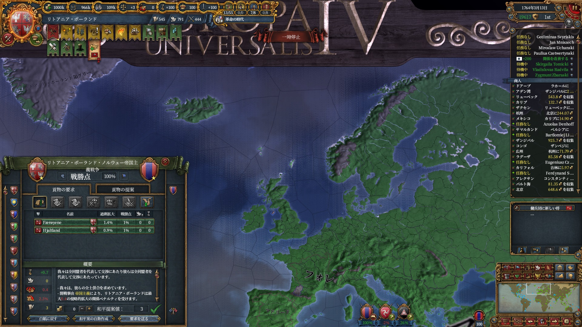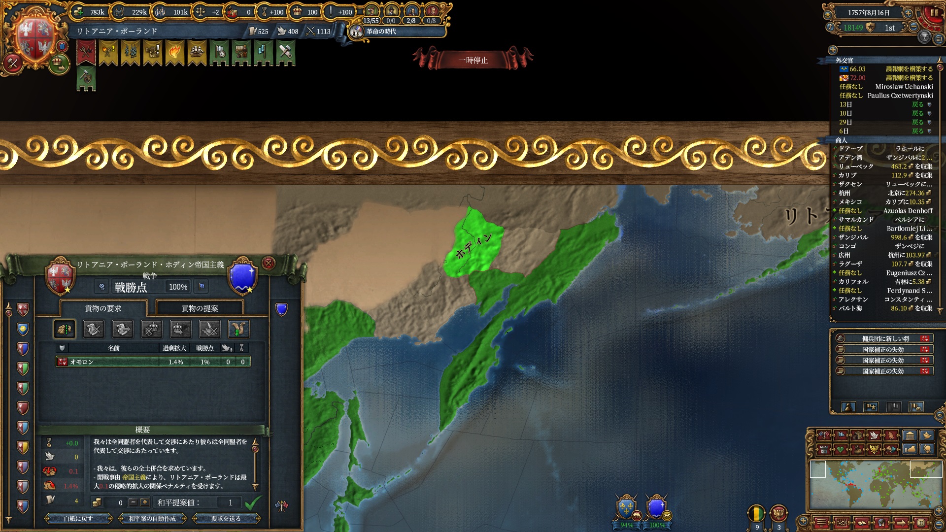 ゲーム後半はリトアニア=ポーランドNI・権勢アイデア・権勢統治ポリシーが合わさり属国併合コストは-60%に達します(特権込みで65%)。