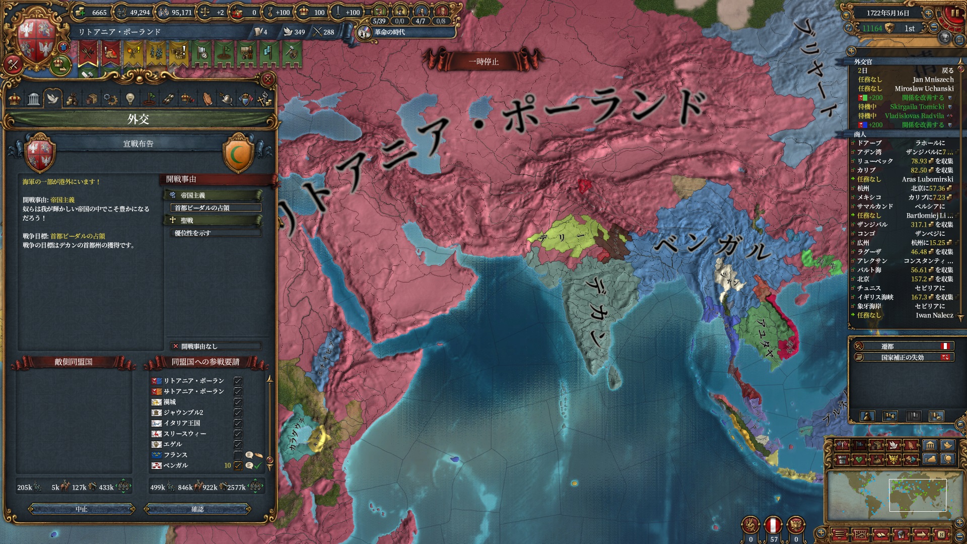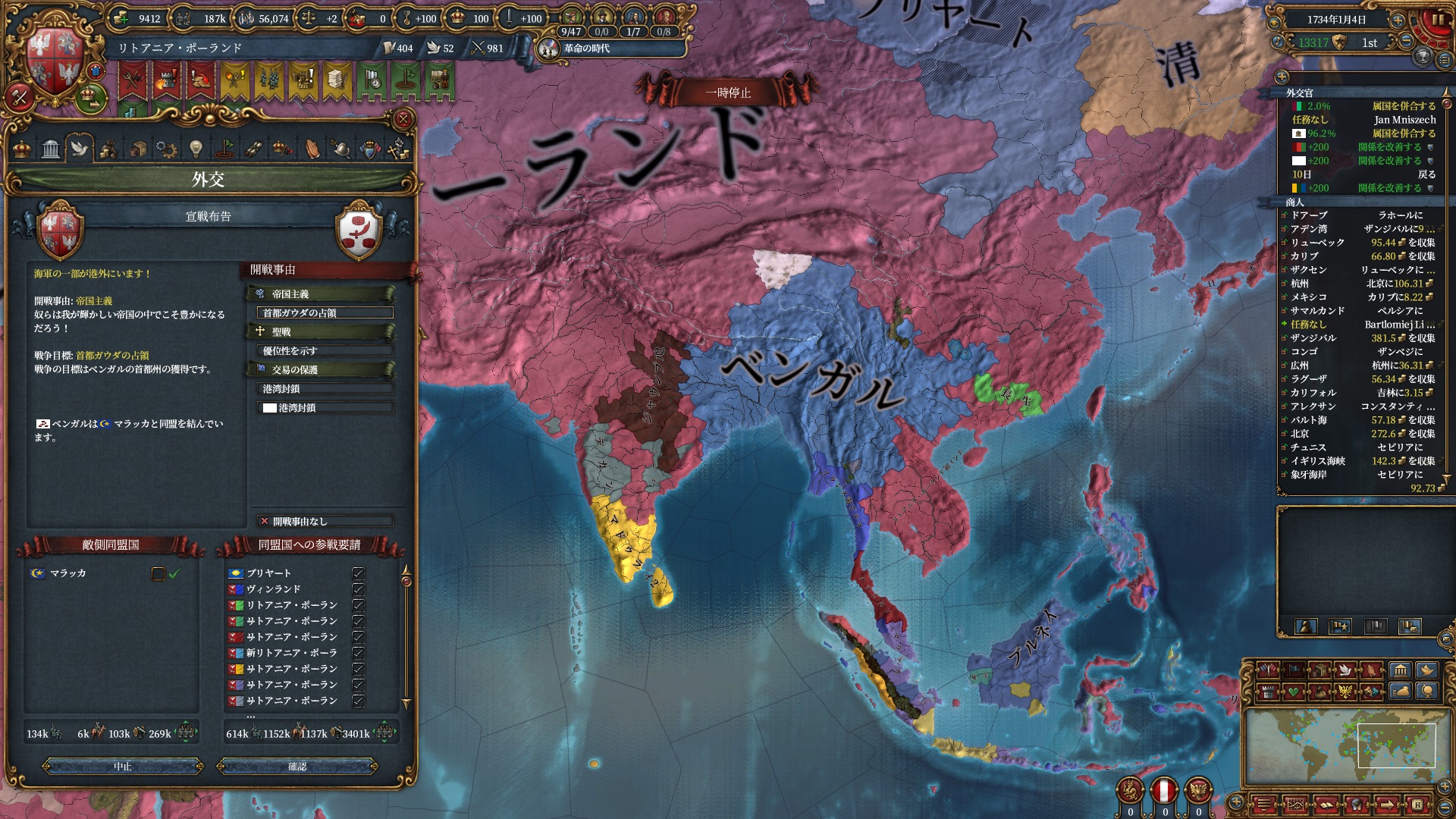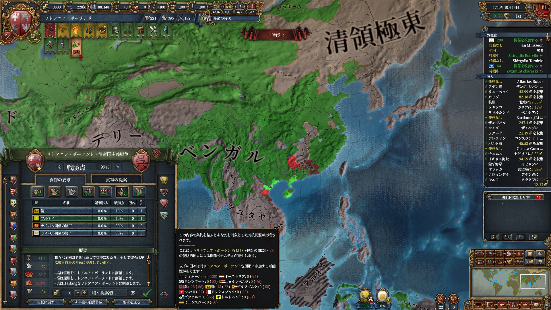 インド方面の軍量は多くないですが、ベンガルにも手伝って貰いながら進めます。