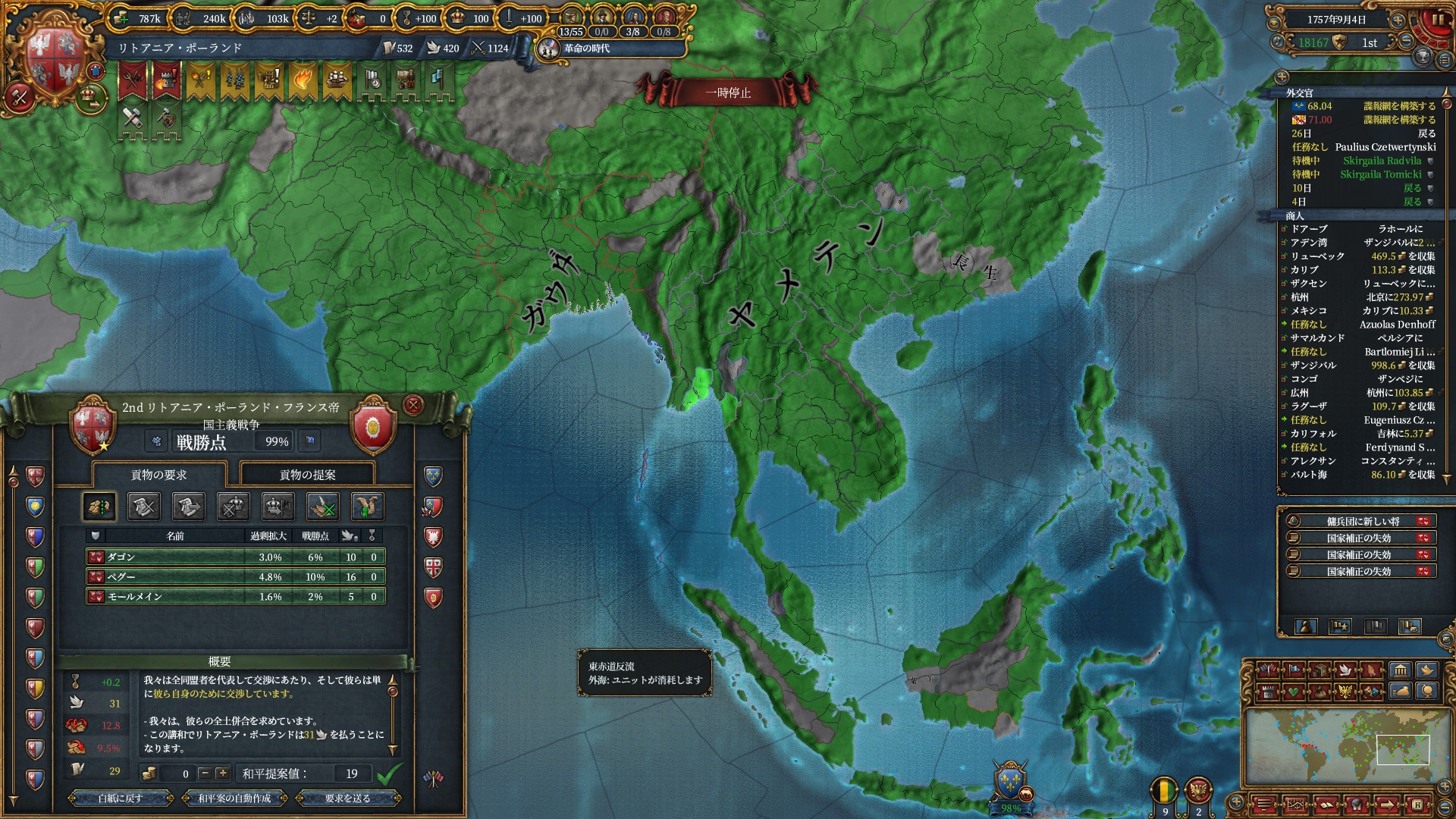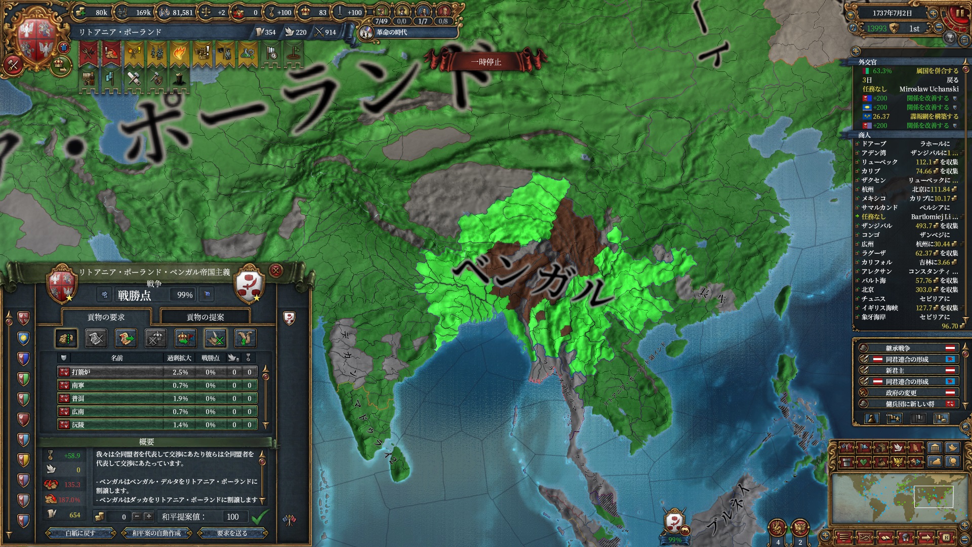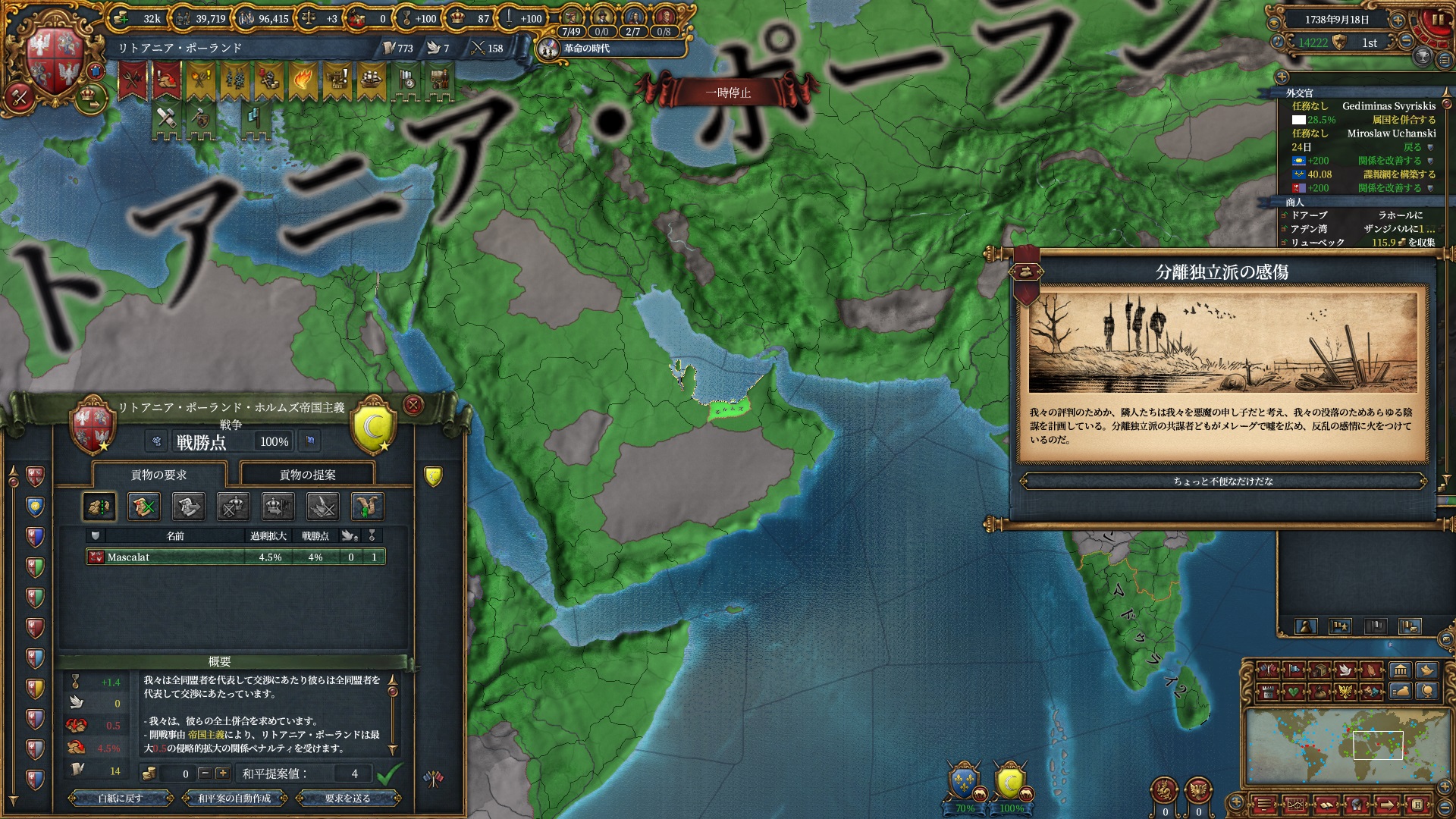 (私はよくGC開始時に存在していない属国バシキリアを入植要員として作っているのですが、今回当該国が早い段階で国家解放で登場してしまっていたため使えなくなってしまいました)