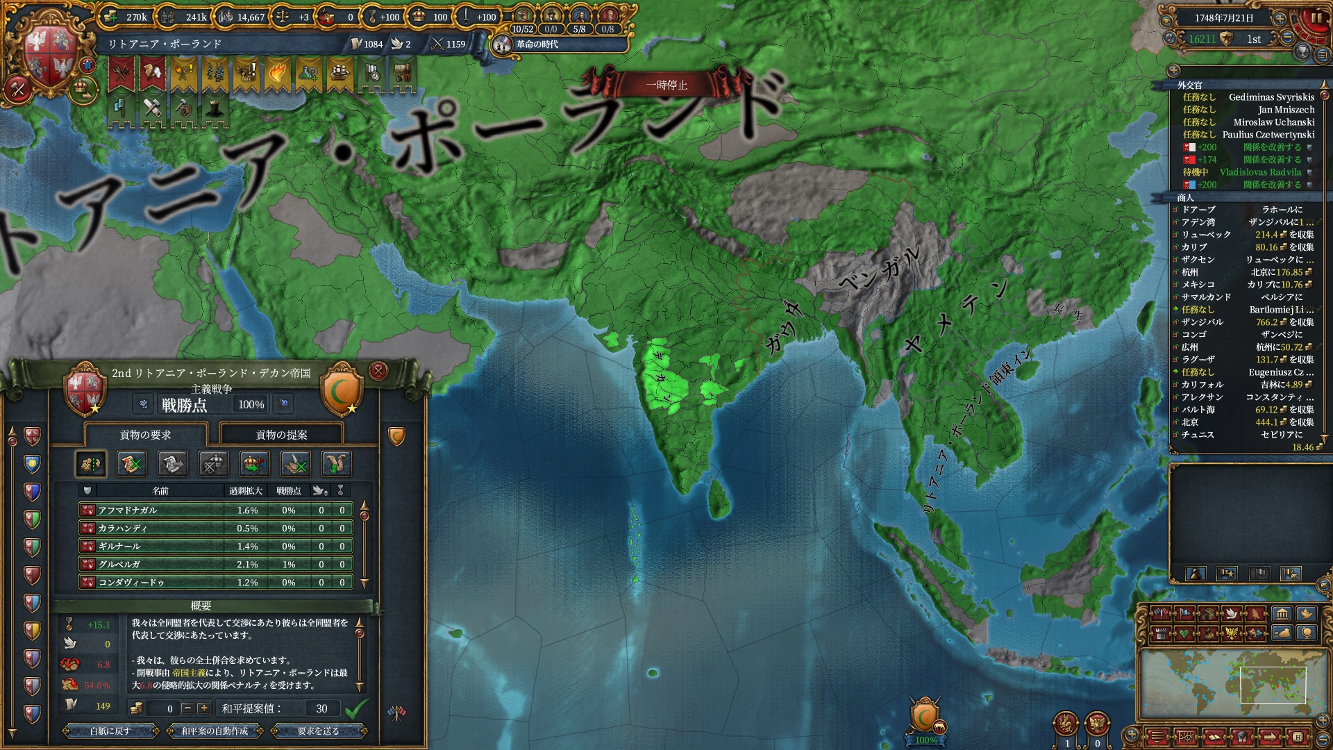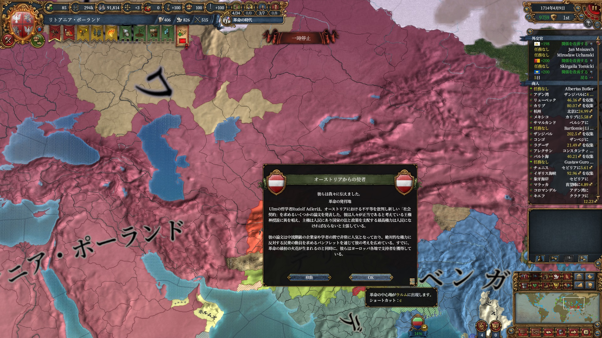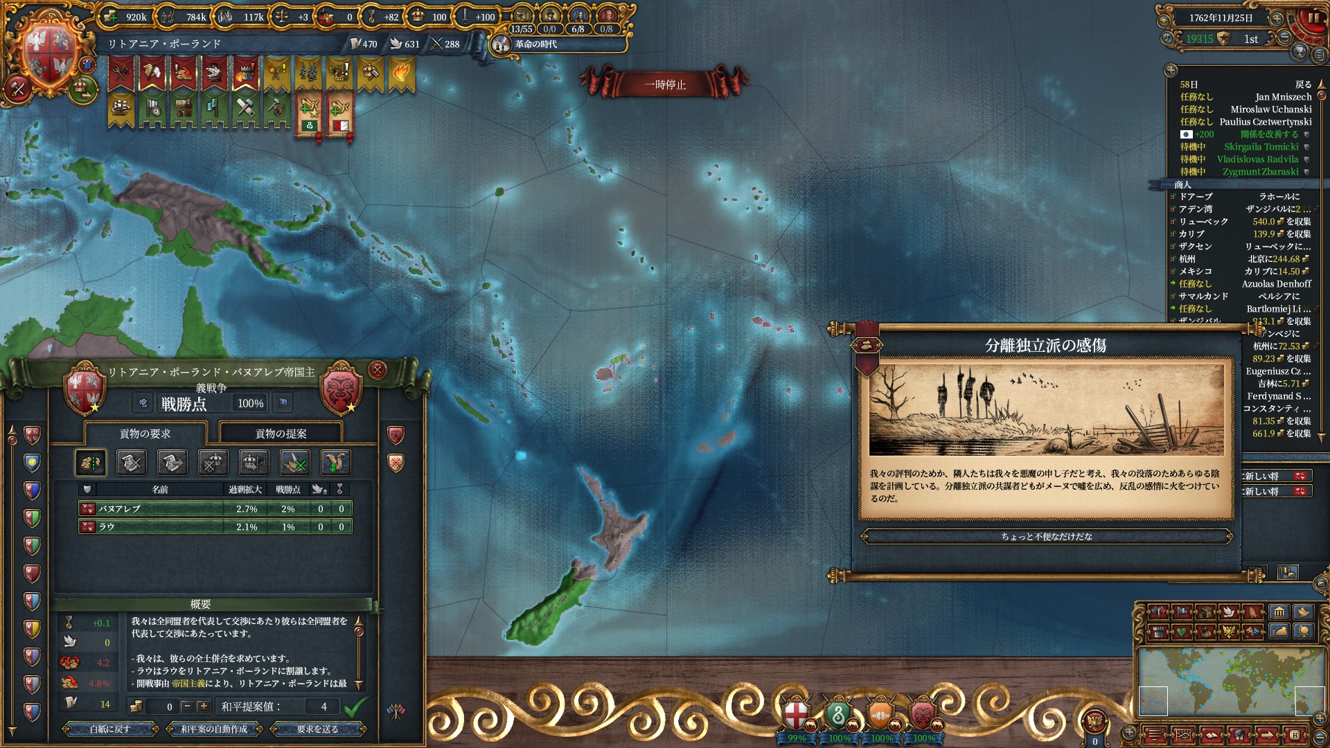 (私はよくGC開始時に存在していない属国バシキリアを入植要員として作っているのですが、今回当該国が早い段階で国家解放で登場してしまっていたため使えなくなってしまいました)