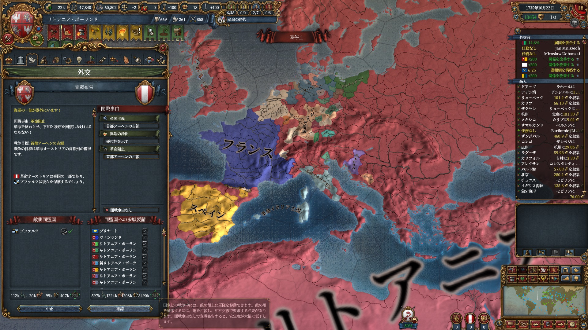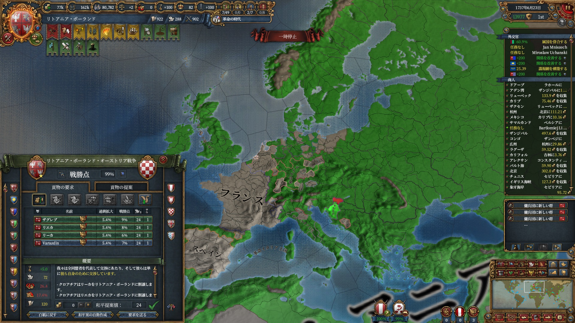 戦争中にオーストリアが革命の標的となったため次回は革命阻止CBで殴って中心地除去を狙います。