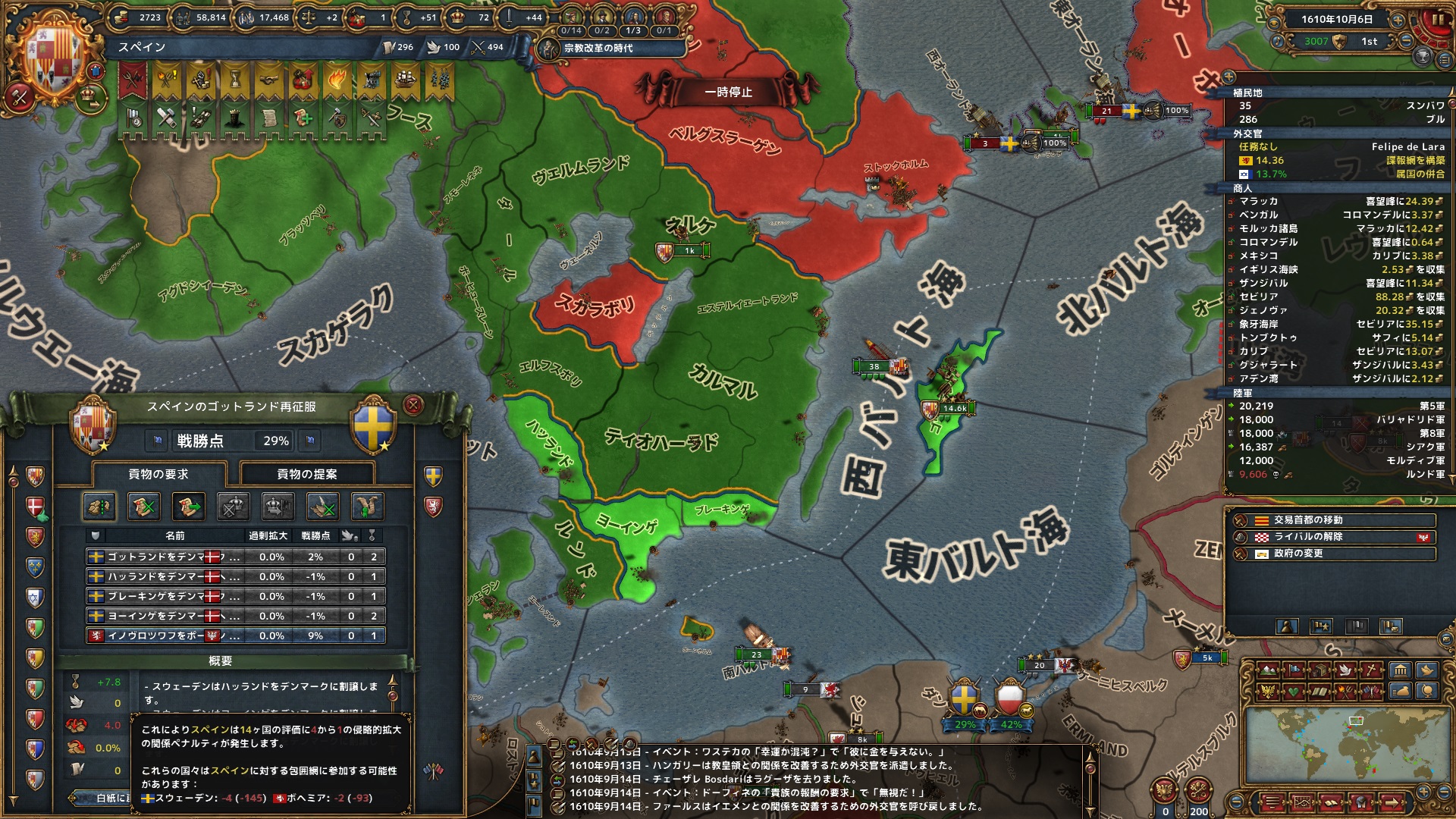 それにしてもデンマークによる再征服はまったく想定になかった。最初からこれを見越してデンマークコアのあるスウェーデン領は獲得を控えめにしたら再征服CBをもっと活用できたかもしれない。