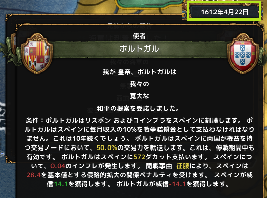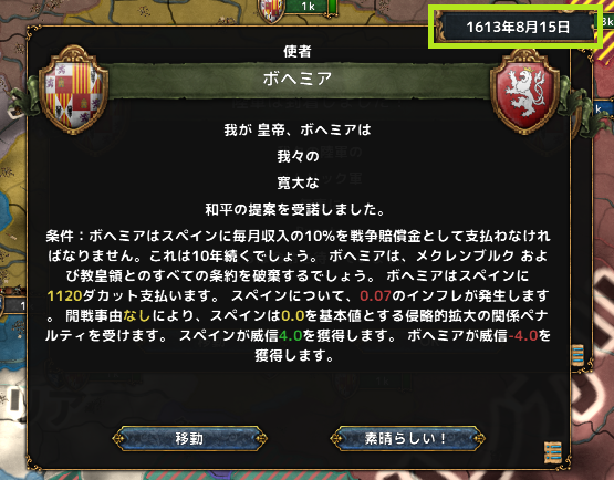 経済と外交での停戦だが、1700ダカットも取れると流石に恩恵が大きい。