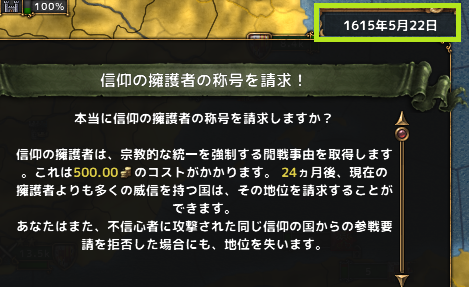 5月 信仰の擁護者になる。軍が弱いと思ったので