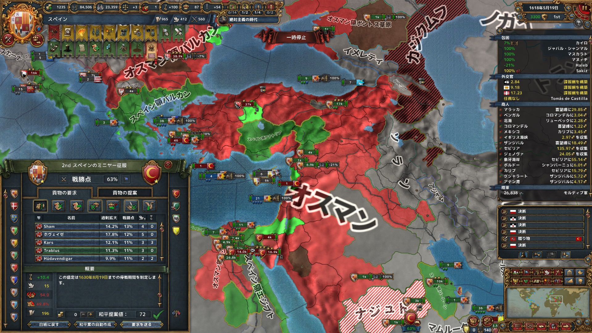 カラマンとズレたお陰で外交評判のデバフを受けたが、意外に長引かずに済んだ。