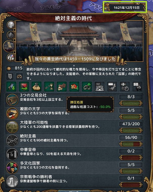 12月 絶対主義の時代の能力で弾圧処置を獲得。