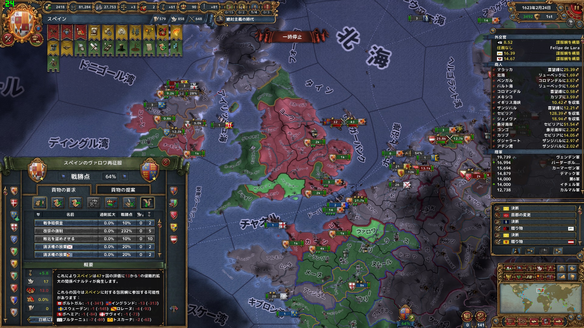 これで絶対主義値が上昇してのボーナスも合わせれば、今までとは段違いの効率で外交併合ができるようになるだろう。