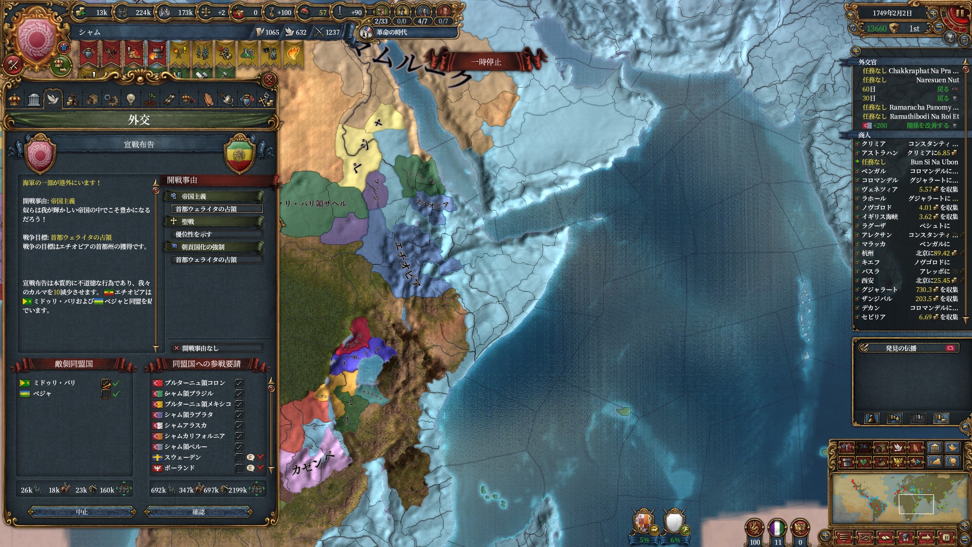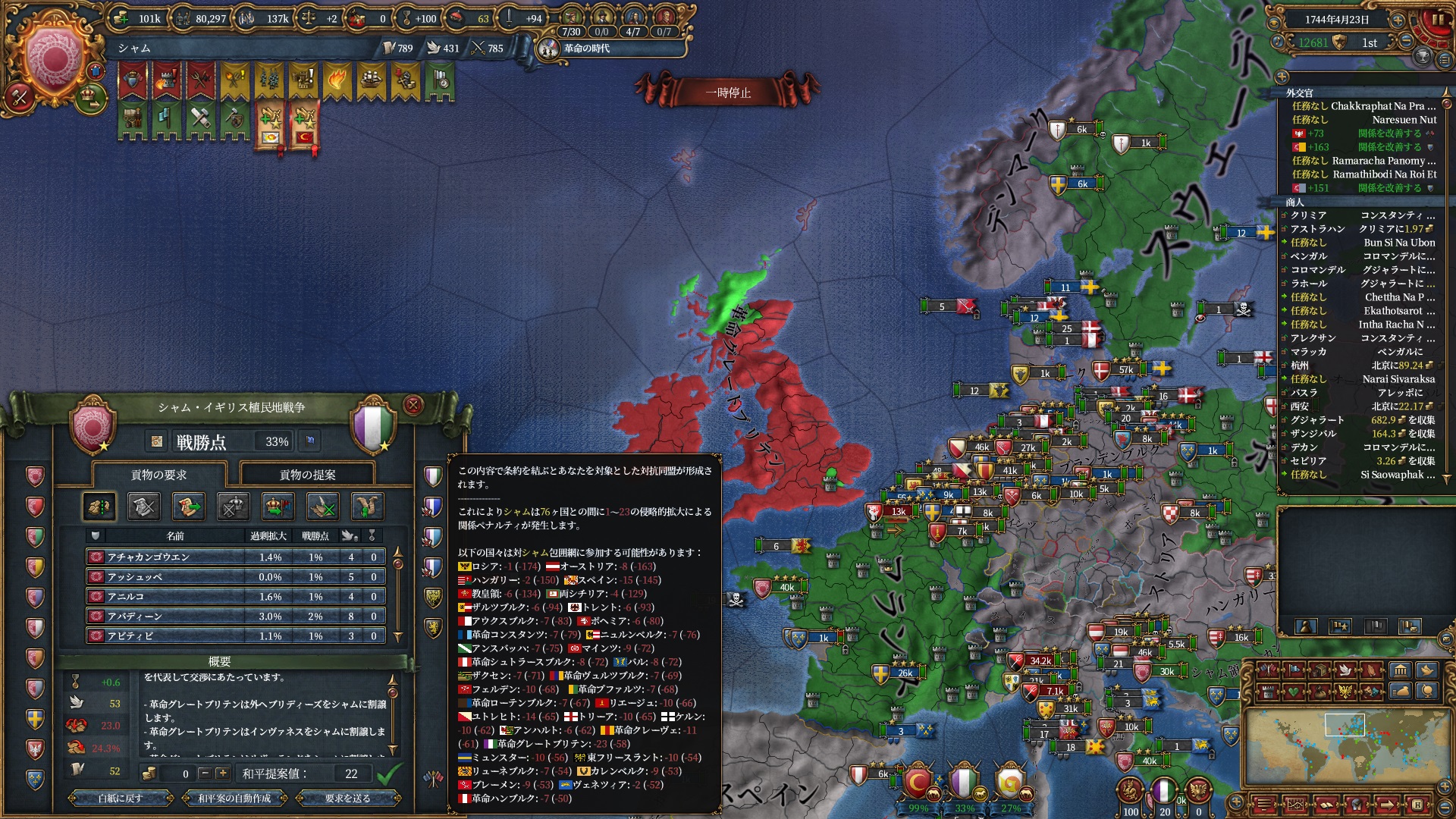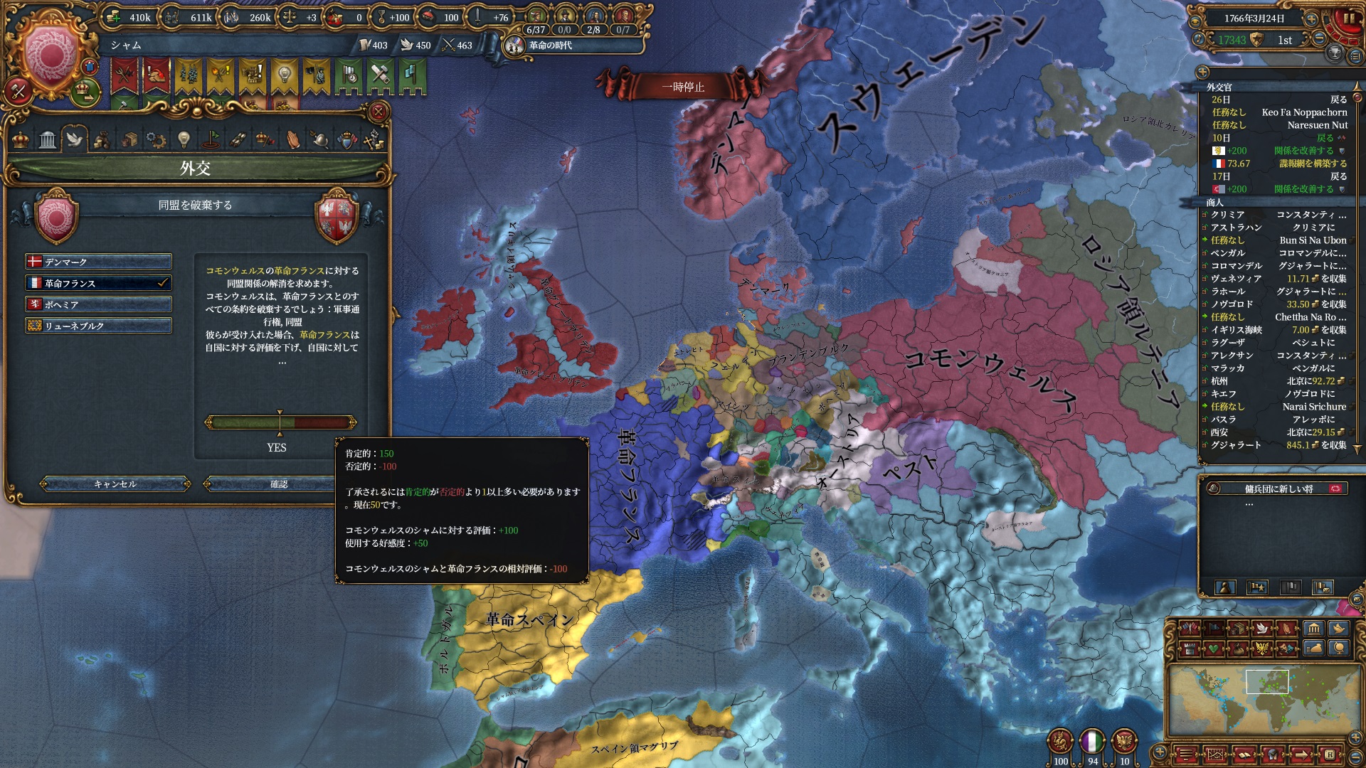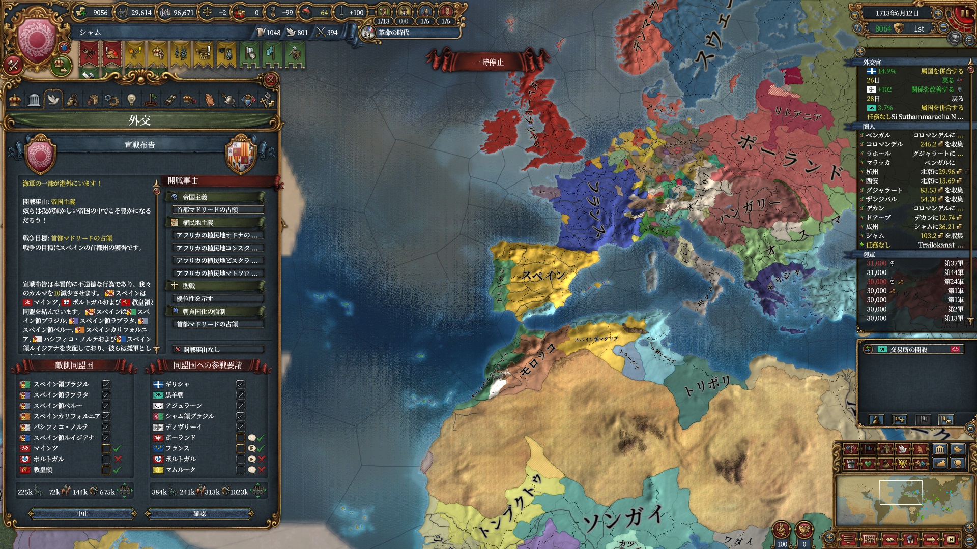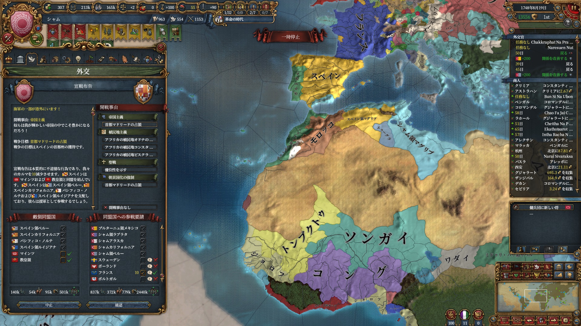 この一連の征服でフランス・スペイン・イギリス・ロシアが大きく弱体化したため、残り年数は少ないですが停戦破りをしないといけない程厳しいといった事は無さそうだと思います。