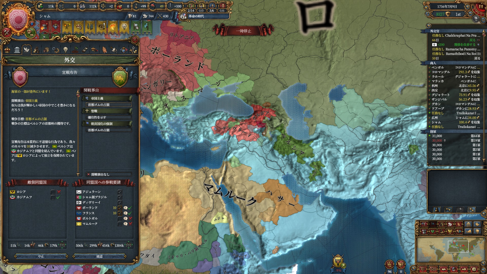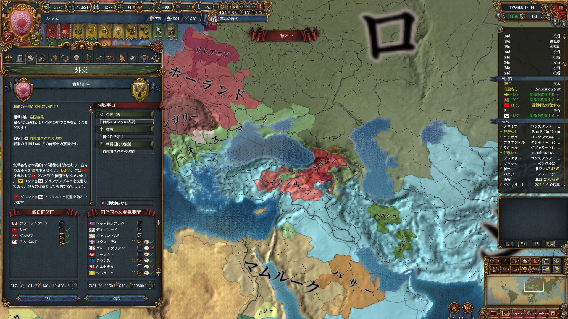 せっかくなのでロシア独立保障がかかっているペルシアに宣戦。
