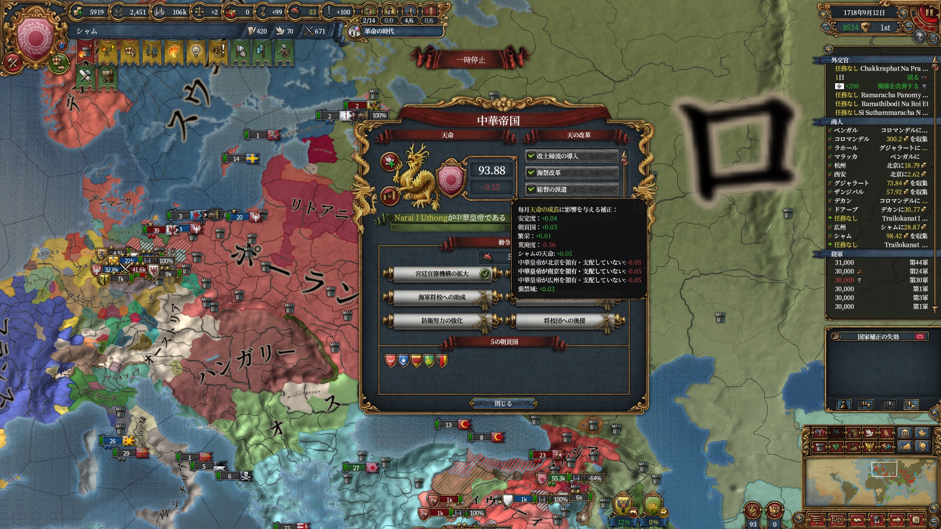 天命は最終的に-0.95を達成、何とか50↑のまま終戦になったので改革を止めて置いて良かったなぁとしみじみ。
