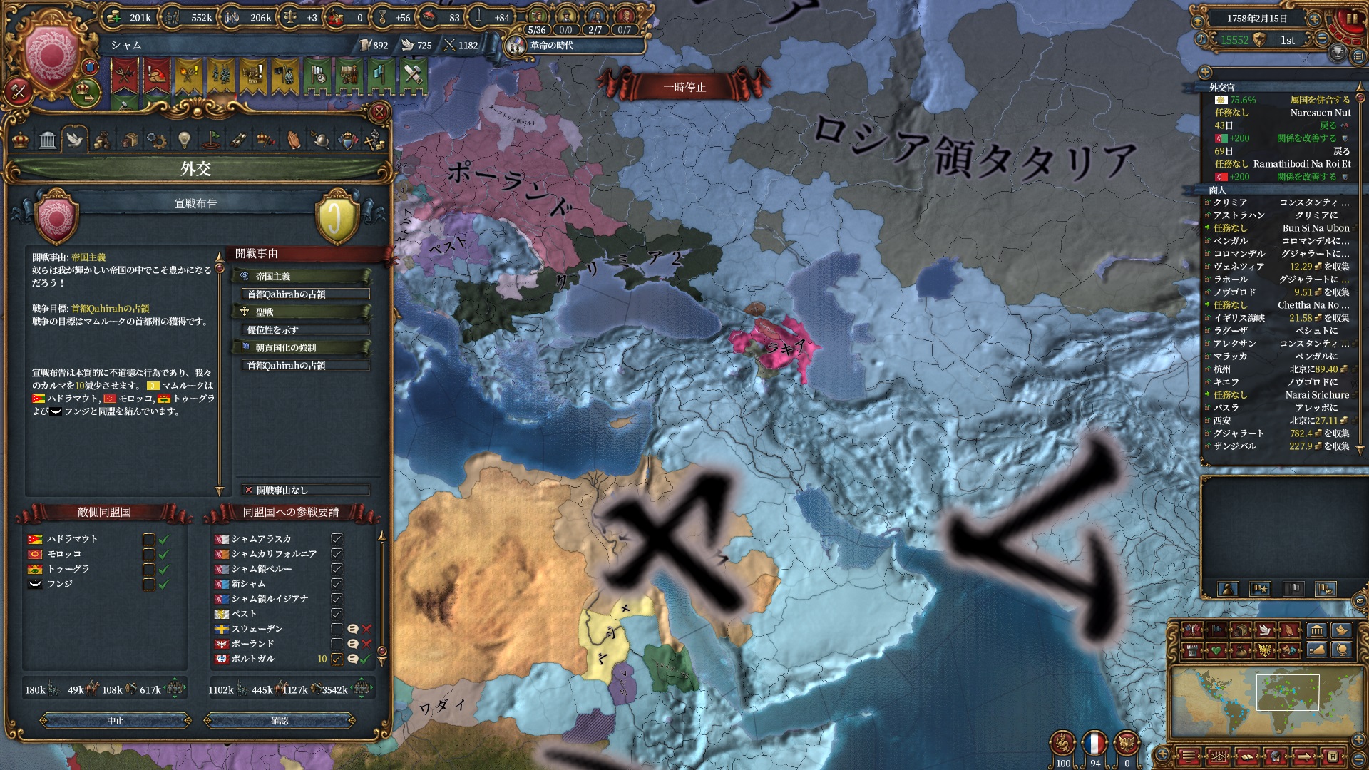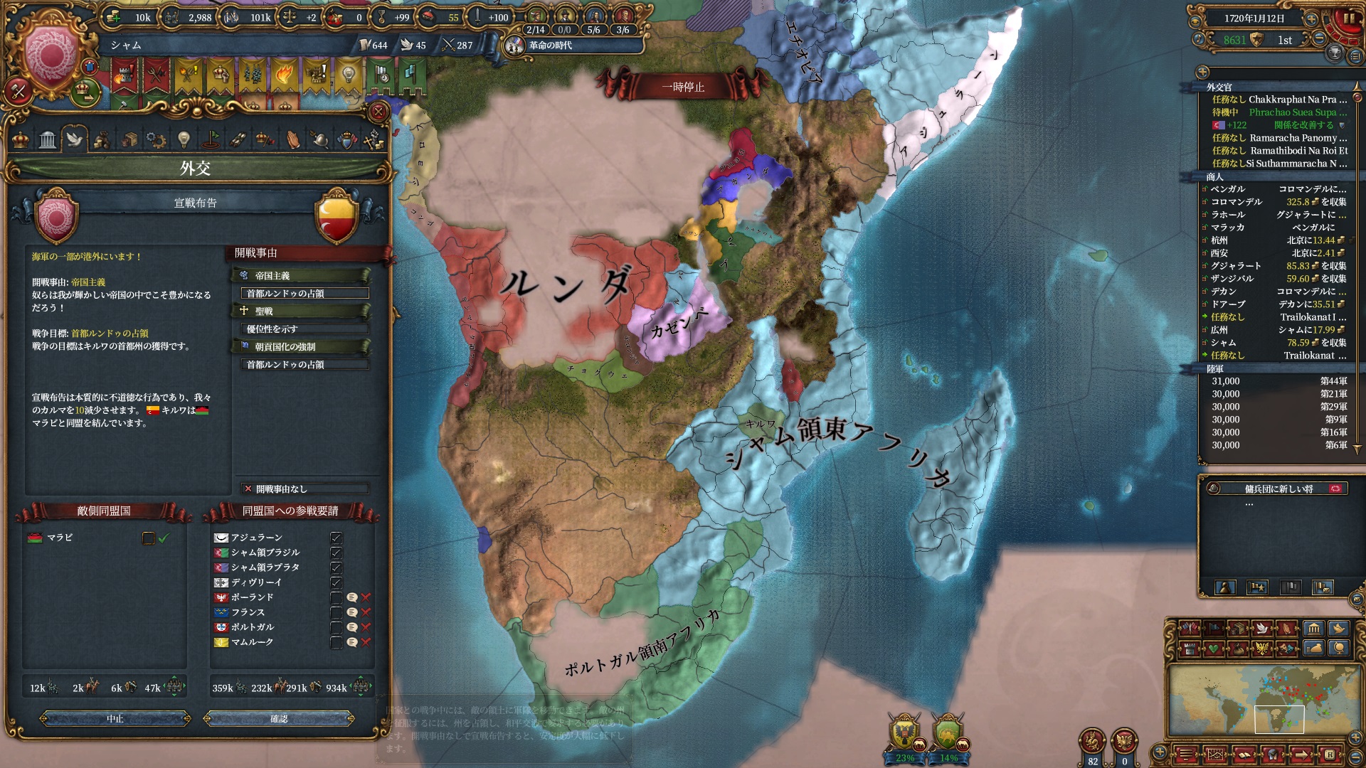借金なり友好なりで幸先よくポルトガルが×なので宣戦します。