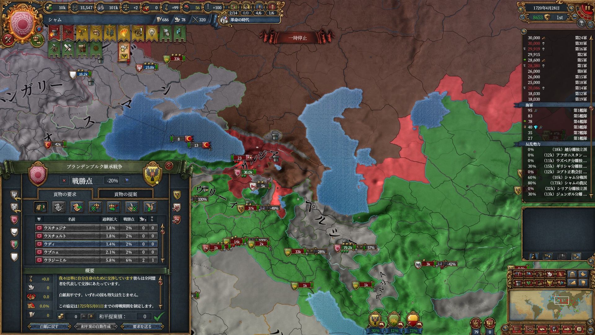 なおここでポーランドのロシア侵攻(ブランデンブルク継承戦争)に巻き込まれてしまい、州を踏まれまくるわ停戦期間を作らされるわの地獄に。