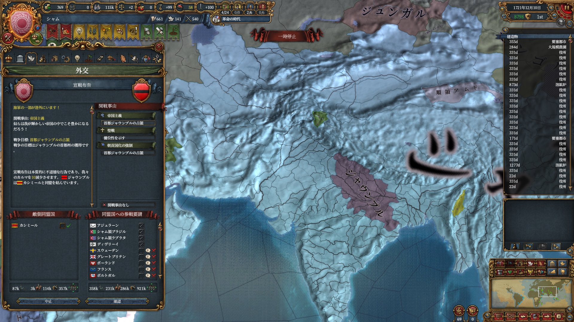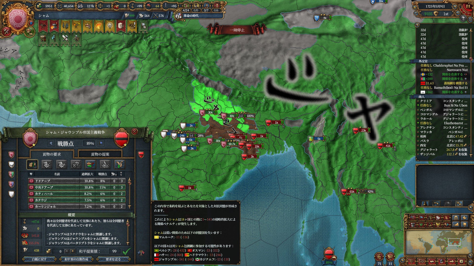 というわけで同盟国も特にいないジャウンプルに宣戦し適当に勝利しました。