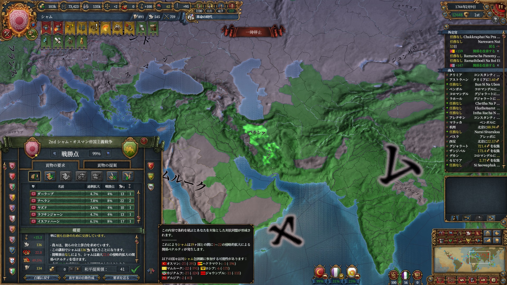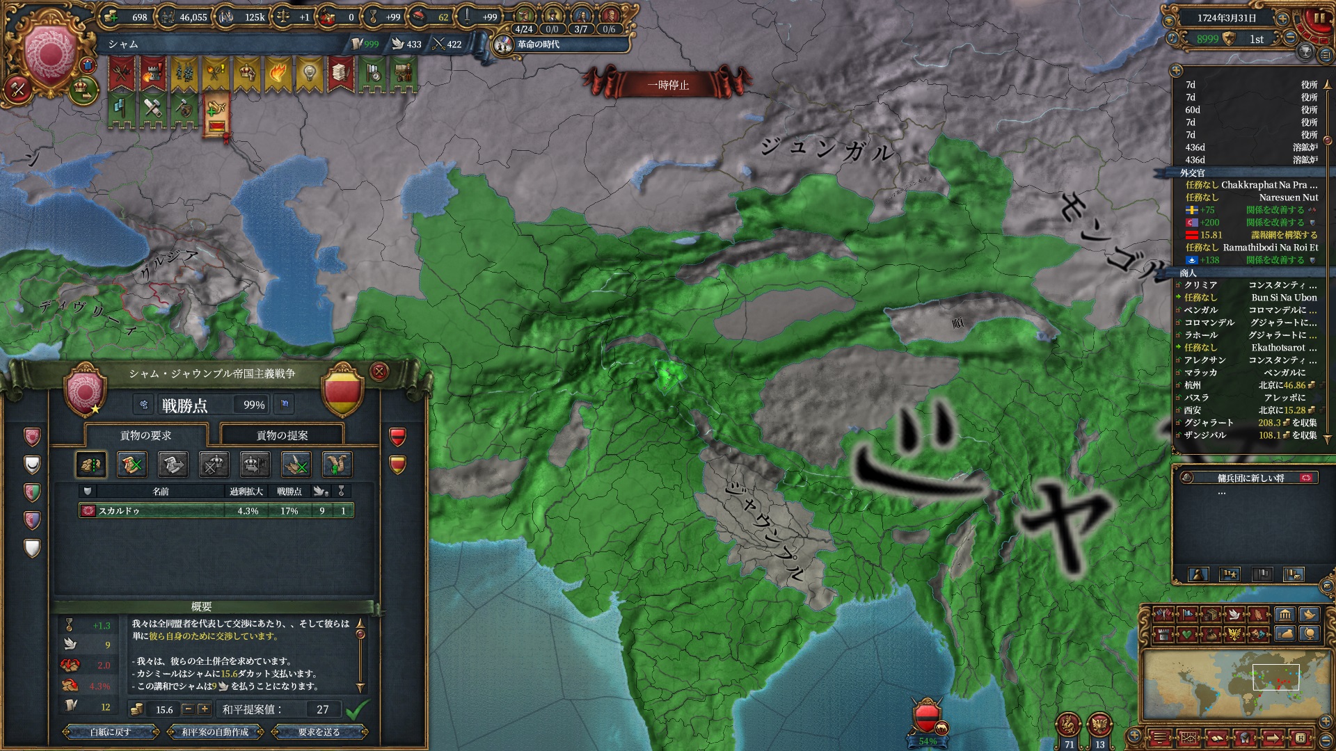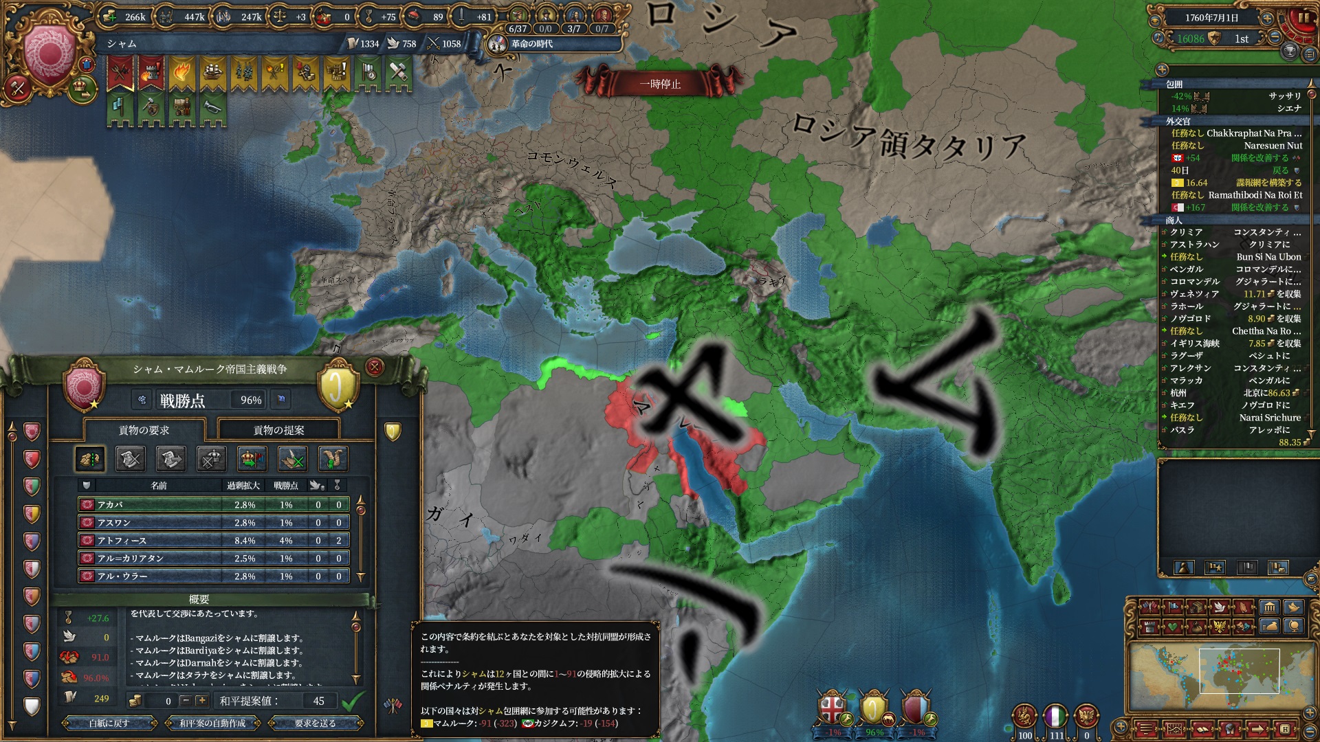 振り返ってみると他に戦争してたわけでもなく属国も2個ぐらいしかなかったのでちょっと勿体ない和平だったかもしれません。